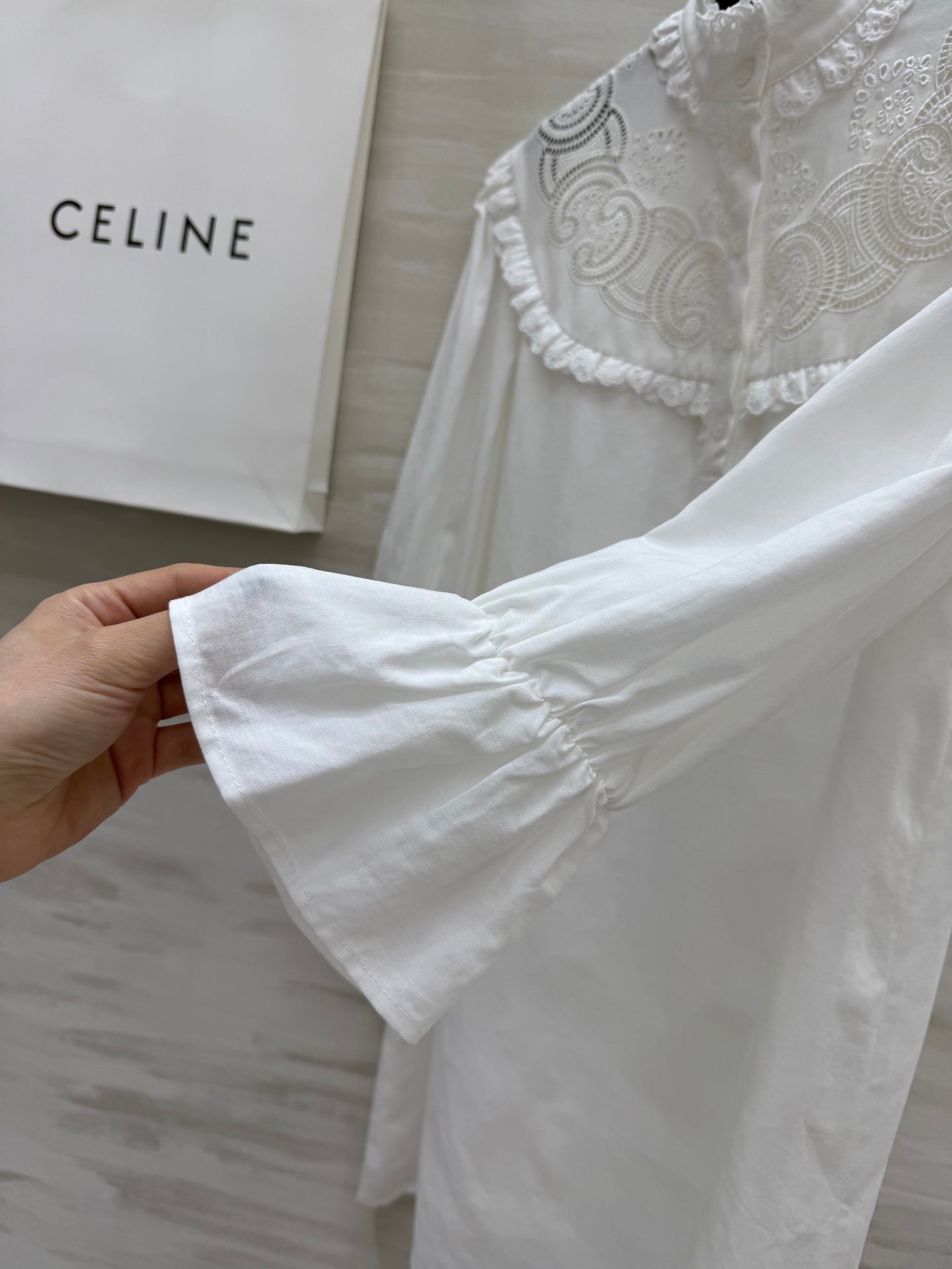 Celine 25 Long sleeve embroidered shirt dress White Cotton