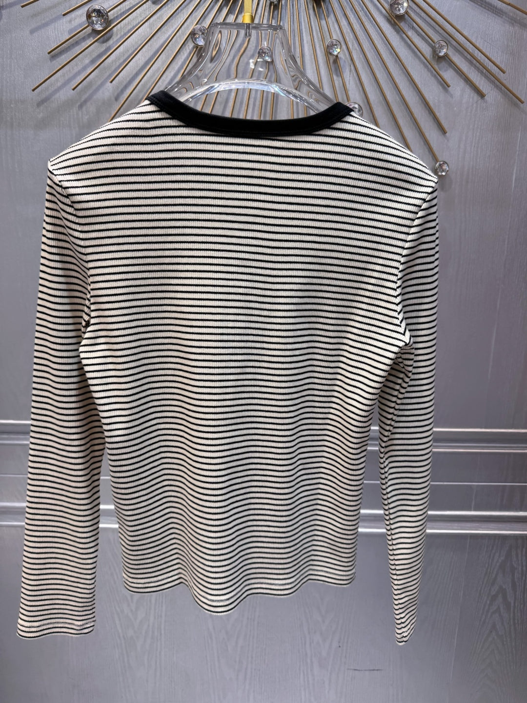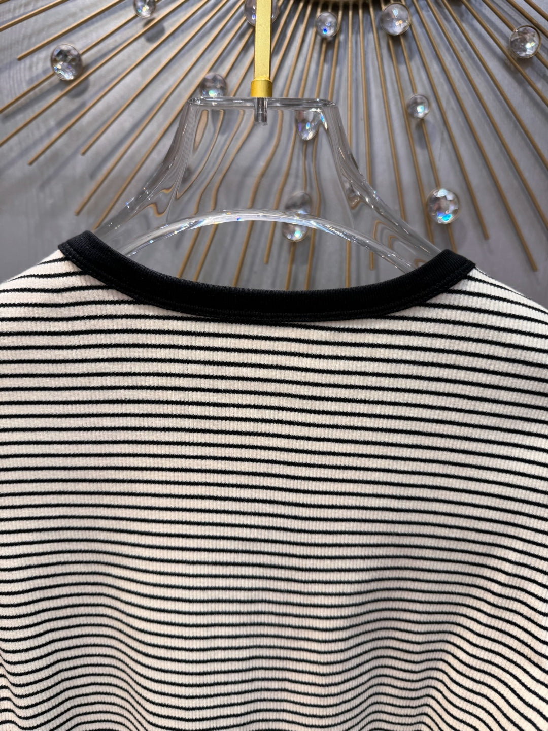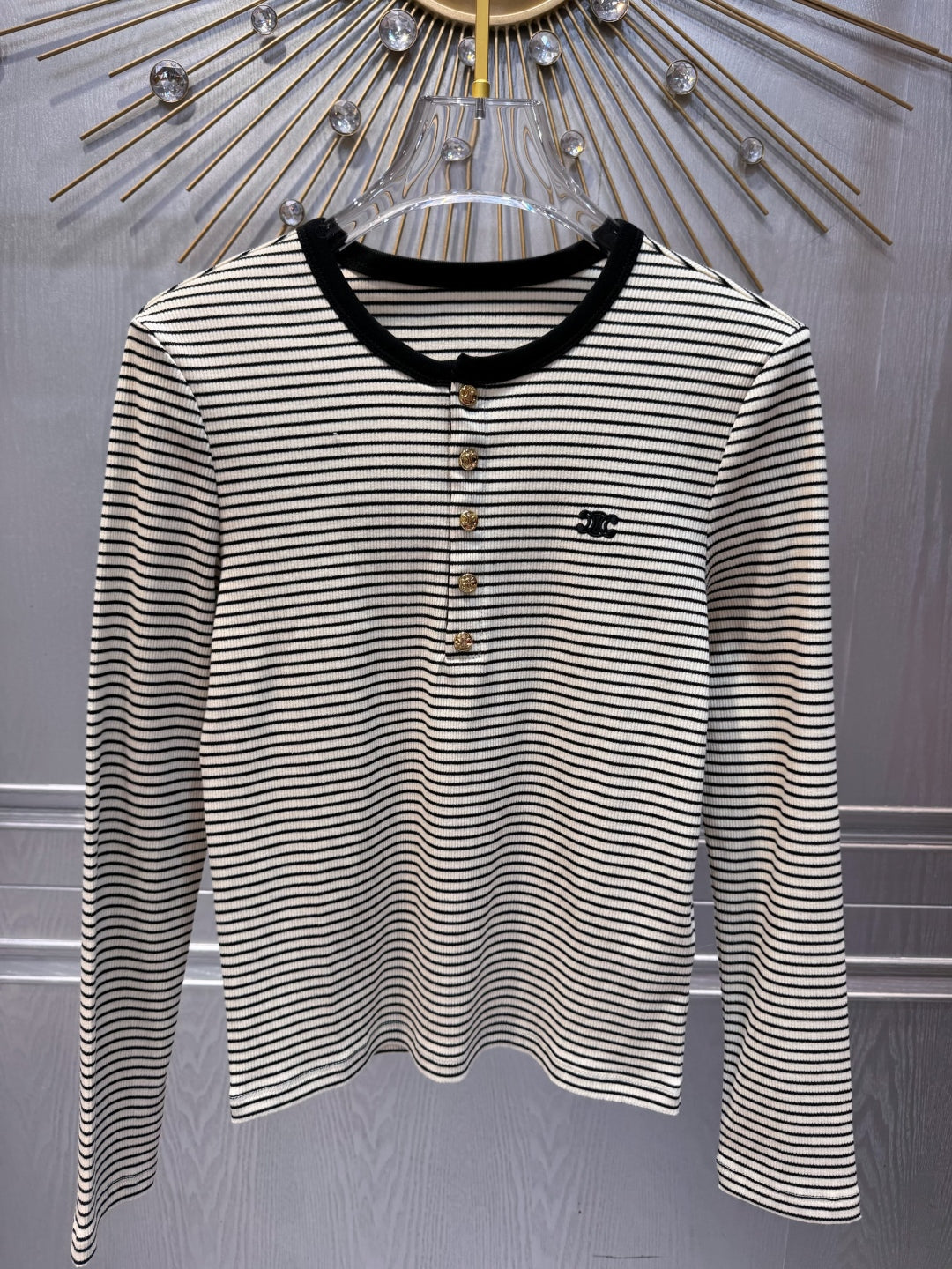 Celine 25 Striped Knitted Long-sleeved T-shirt White Black Cotton