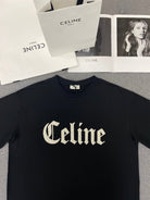 Celine Gothic Embroidered Plain Loose T-shirt Black Cotton