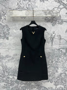 LV 25 Sleeveless Slim Fit Dress Black Poliester