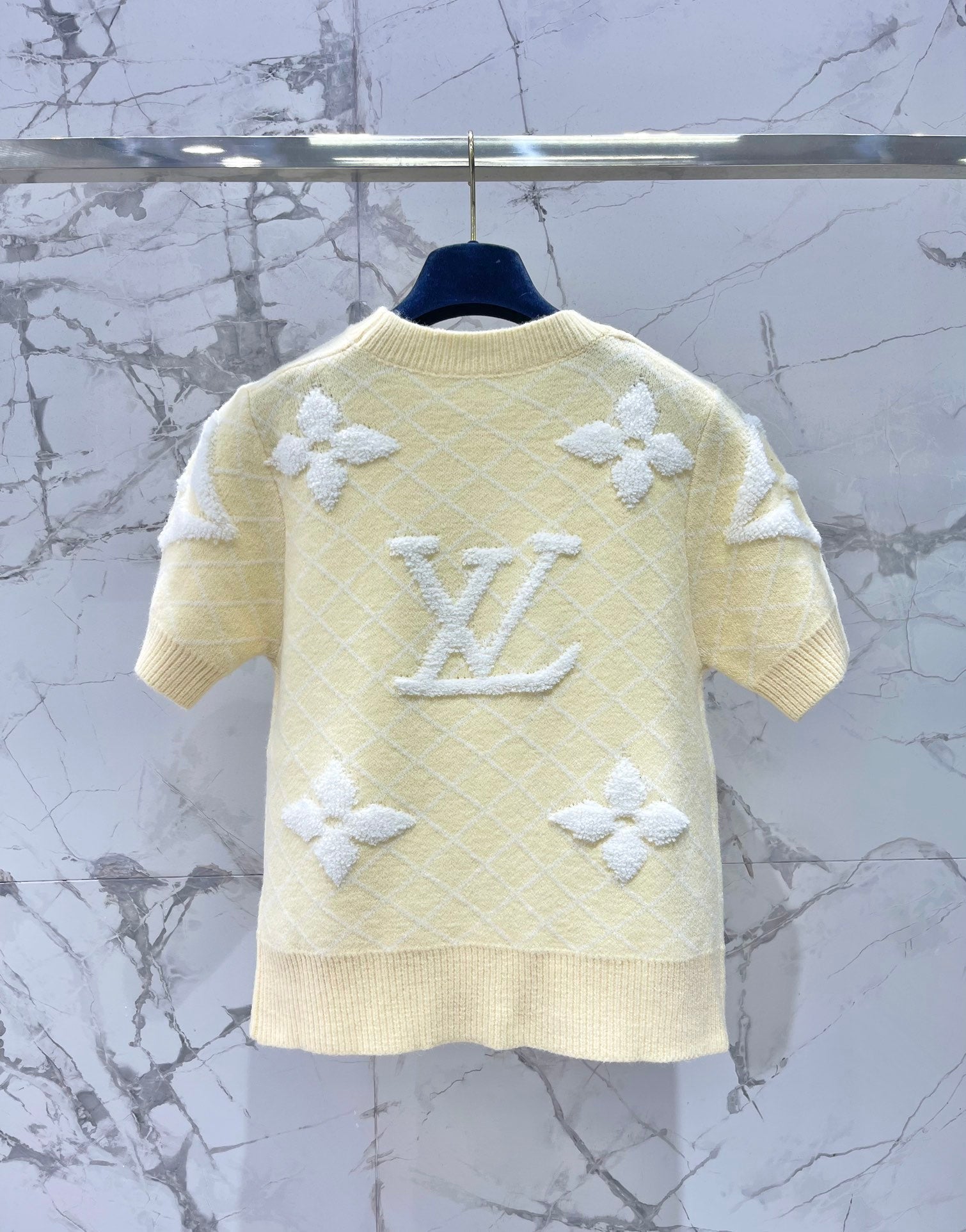 LV Flower T Shirt Light Yellow Polyamide Wool