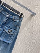 Prada 2025 Denim Cargo Pants Blue Cotton