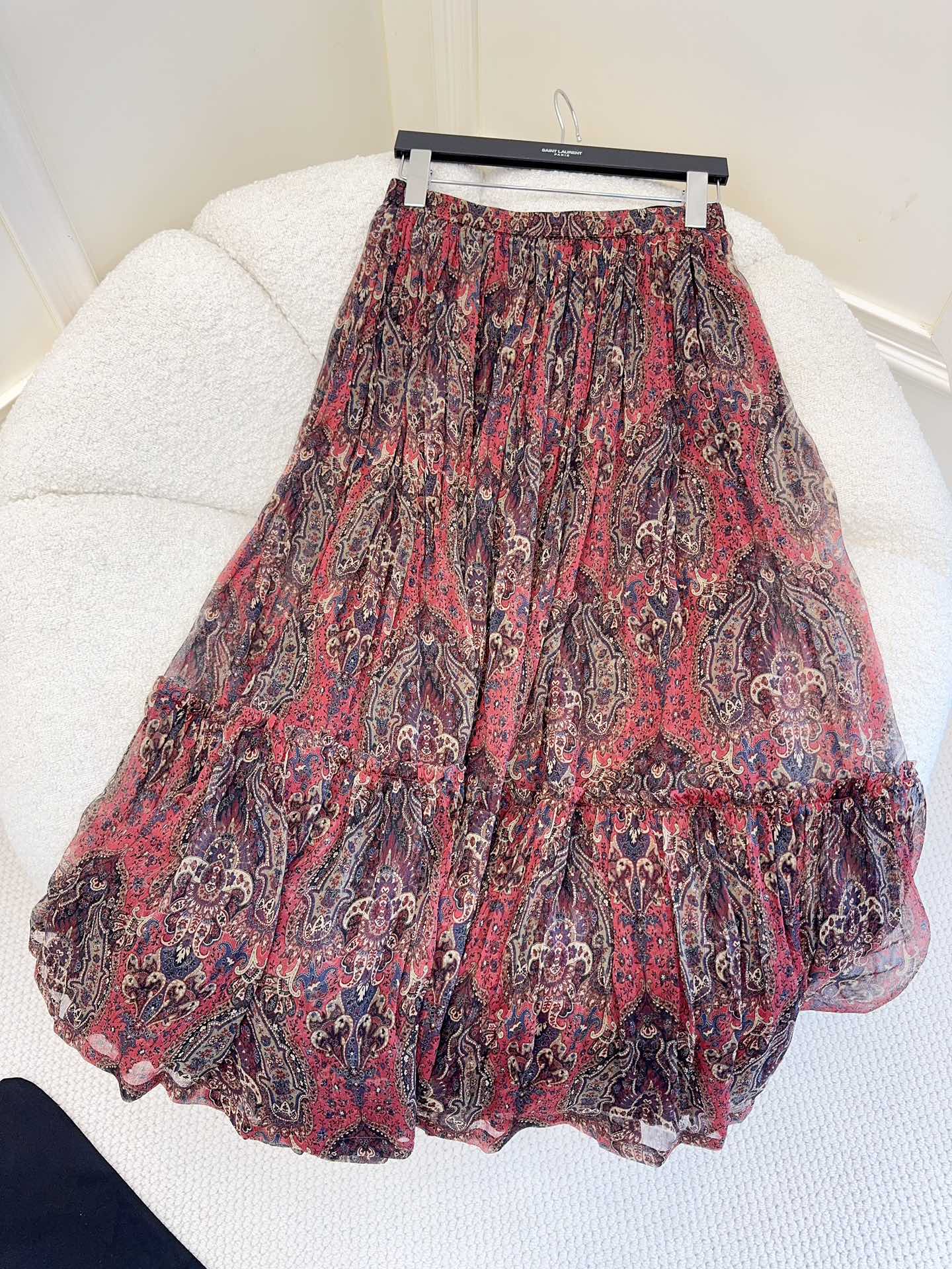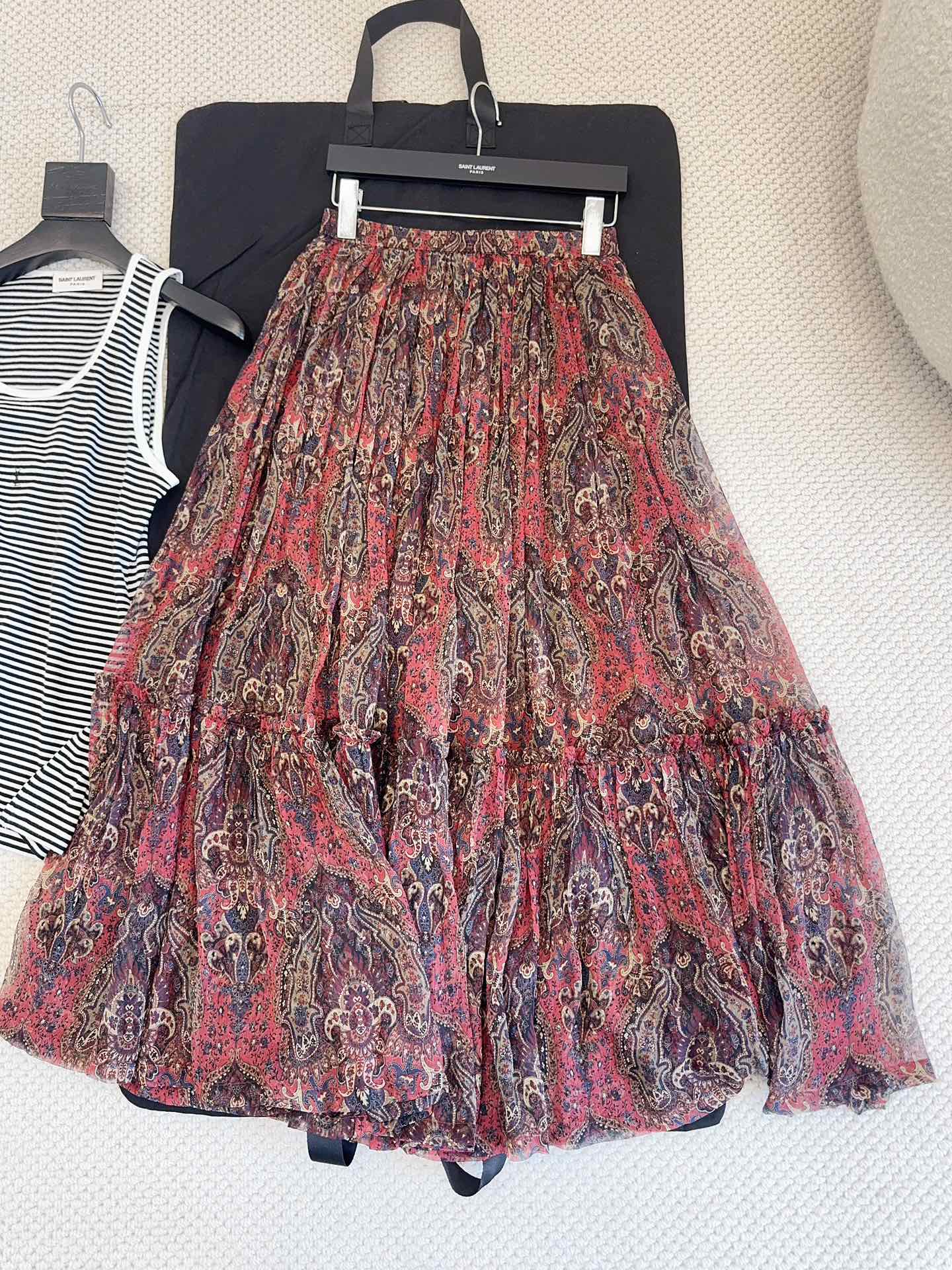 YSL 2025 Printed Skirt Red Silk