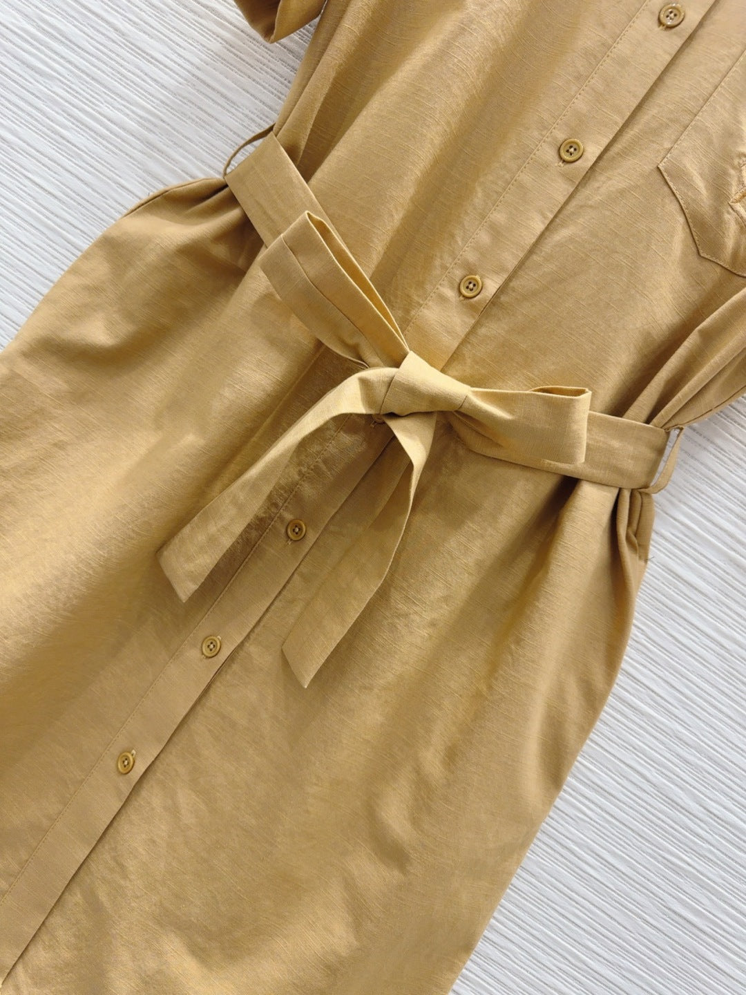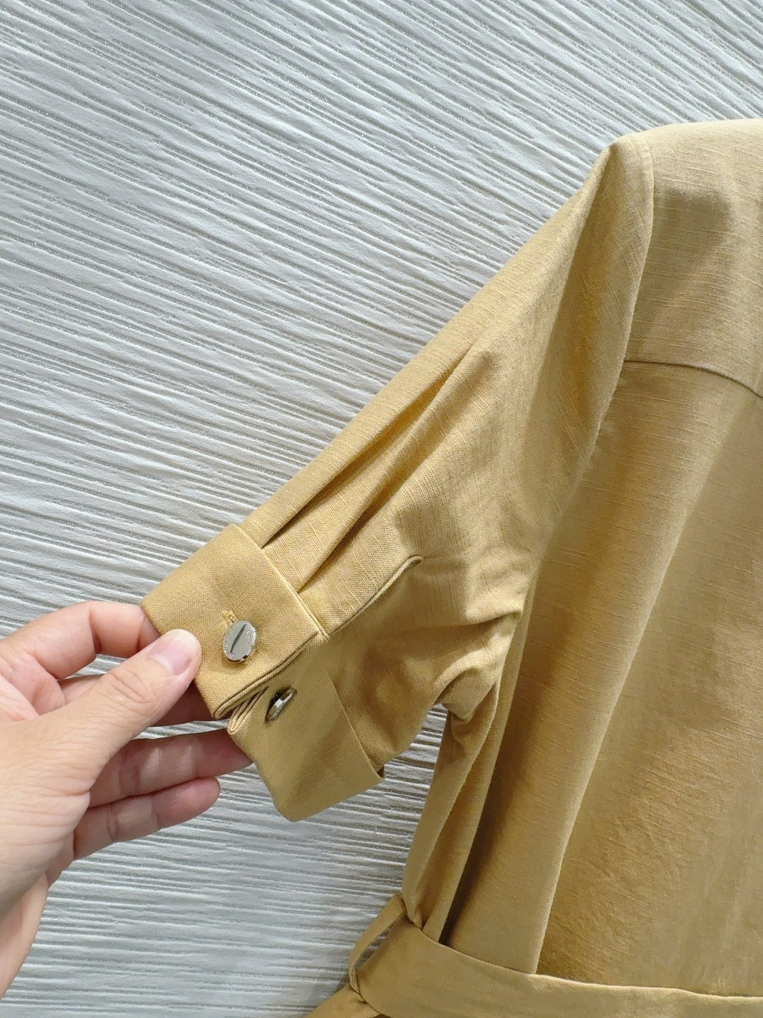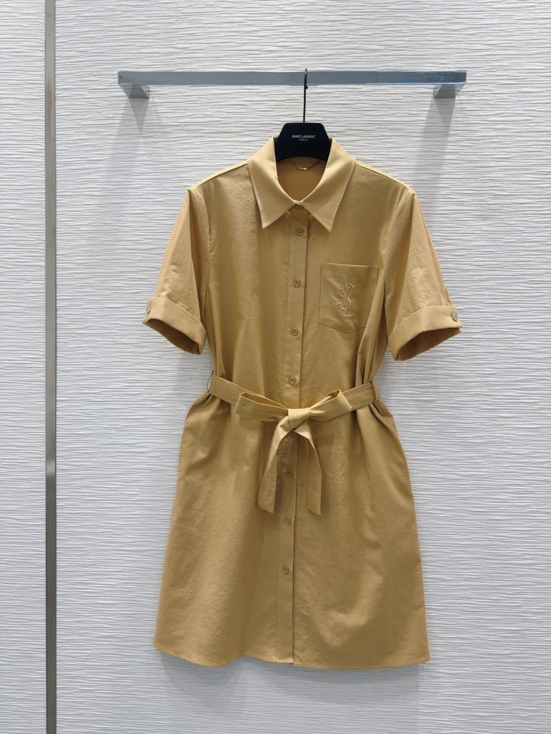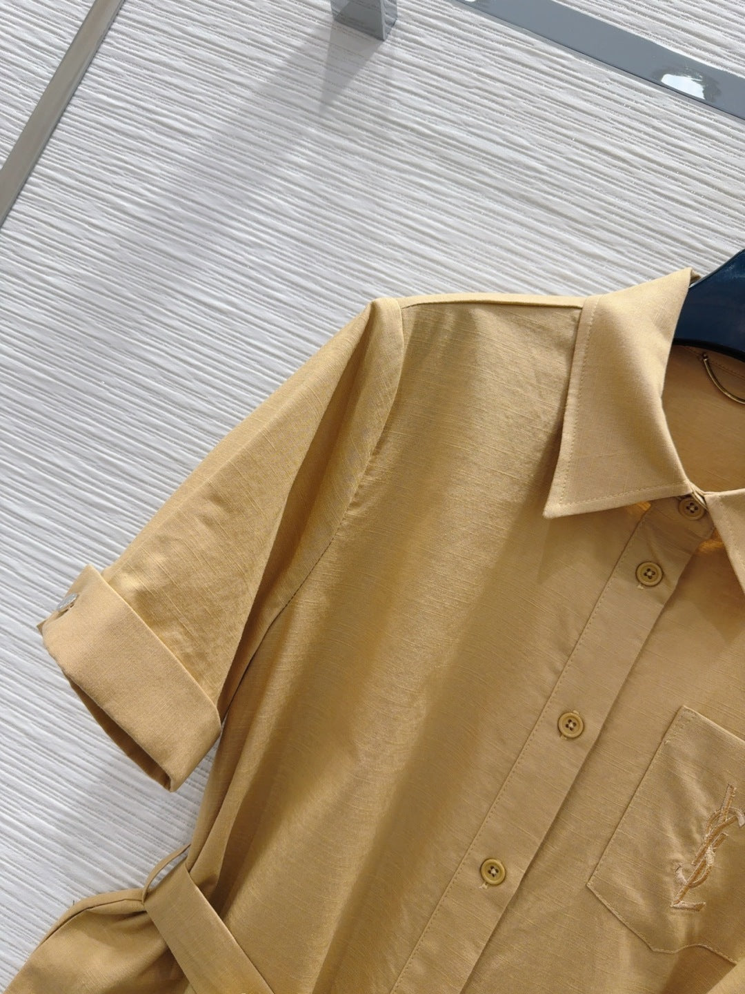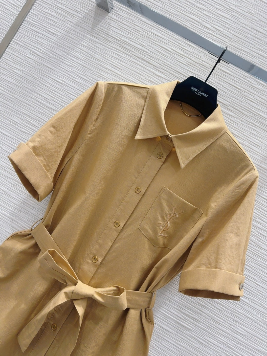 YSL 2025 Shirt Dress Beige Flax Cotton