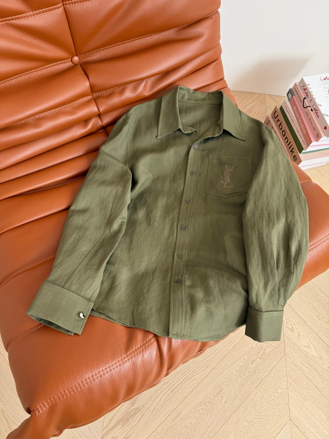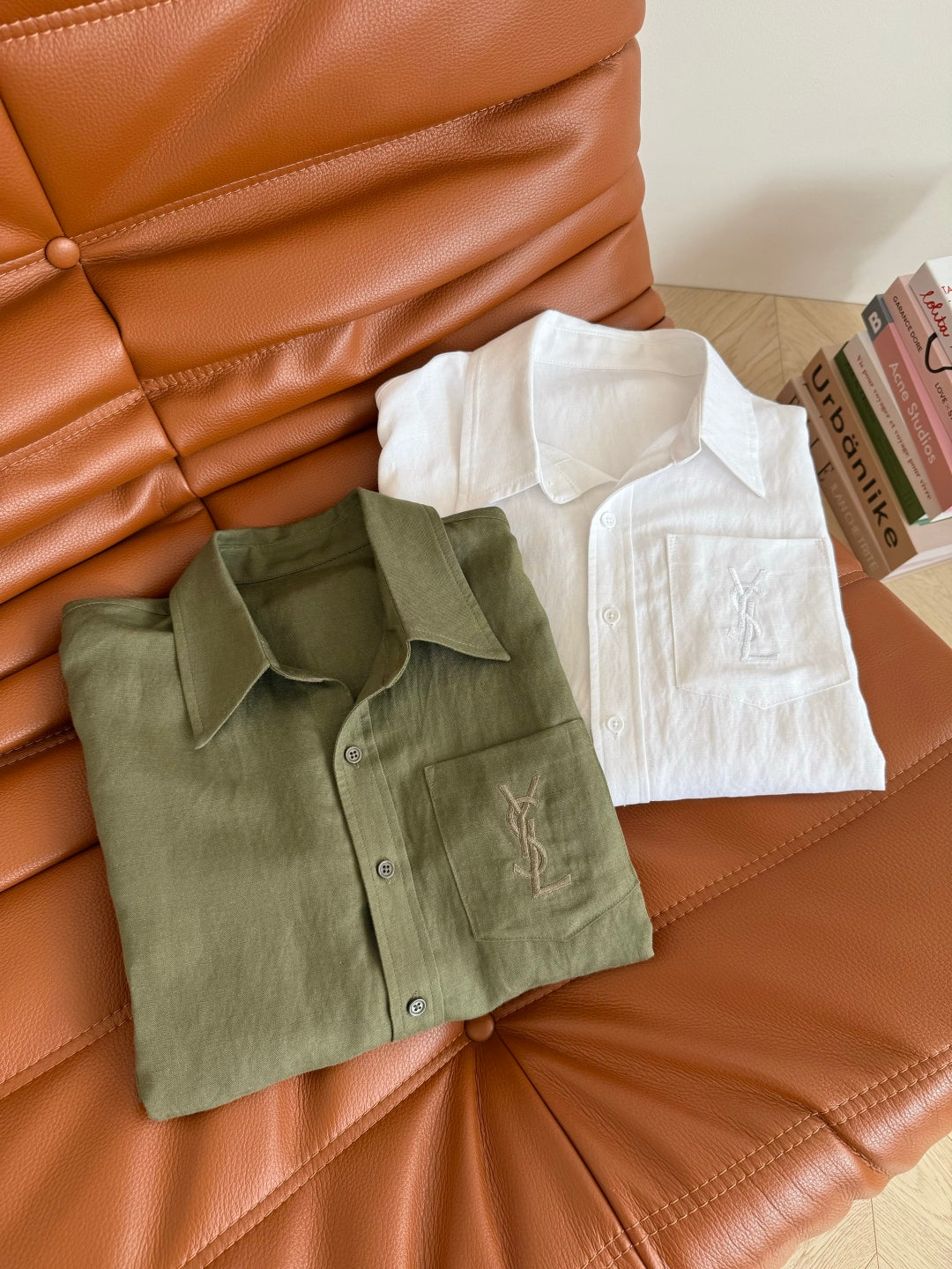 YSL 25 Shirt Green and White Linen