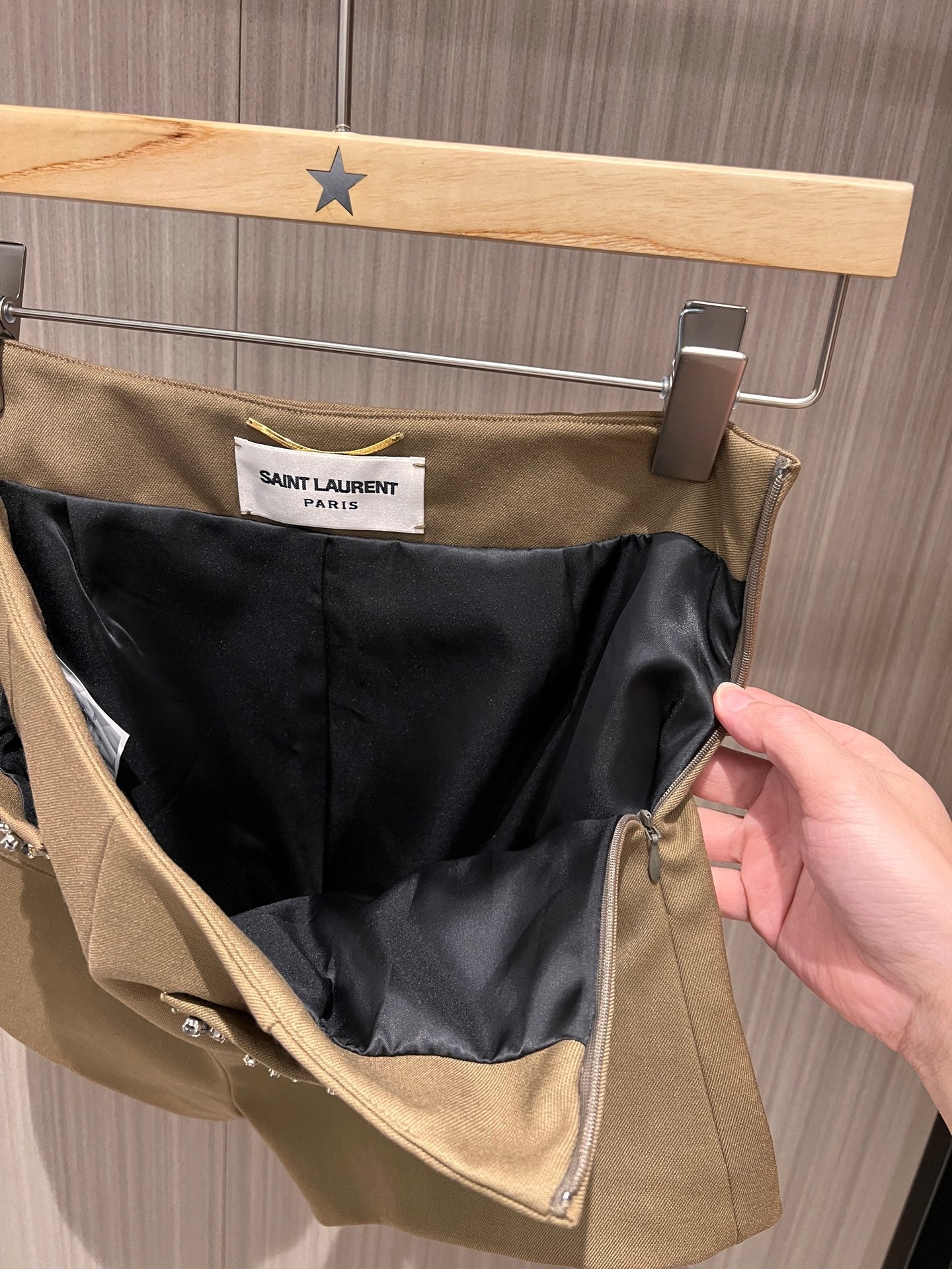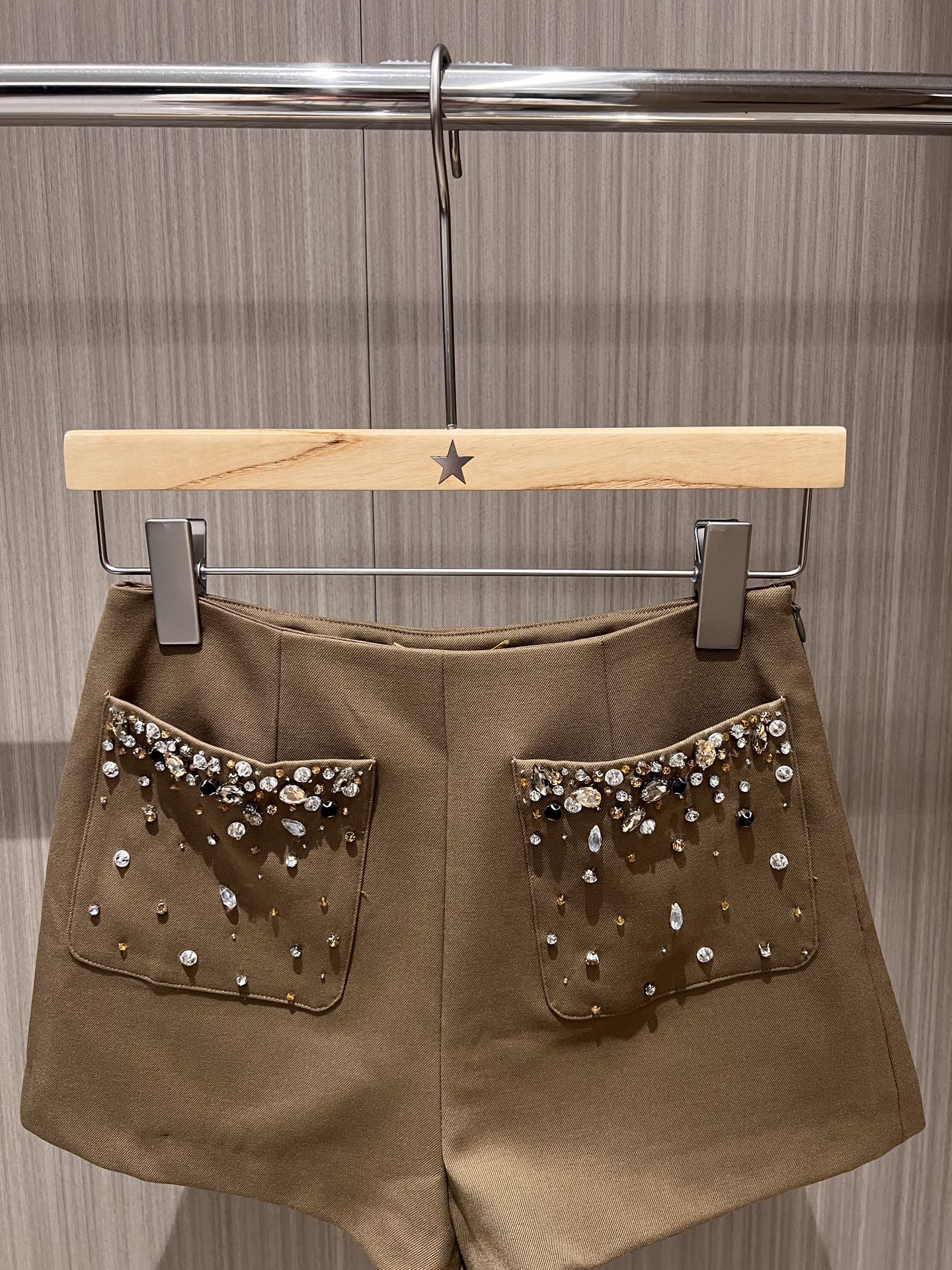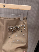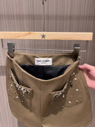 YSL Rhinestone Double Pocket Suit Shorts Light Beige Wool Polyester Rayon