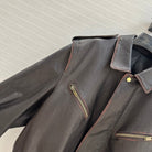 YSL Right-angle Shoulder Silhouette Jacket Black Brown Lambskin