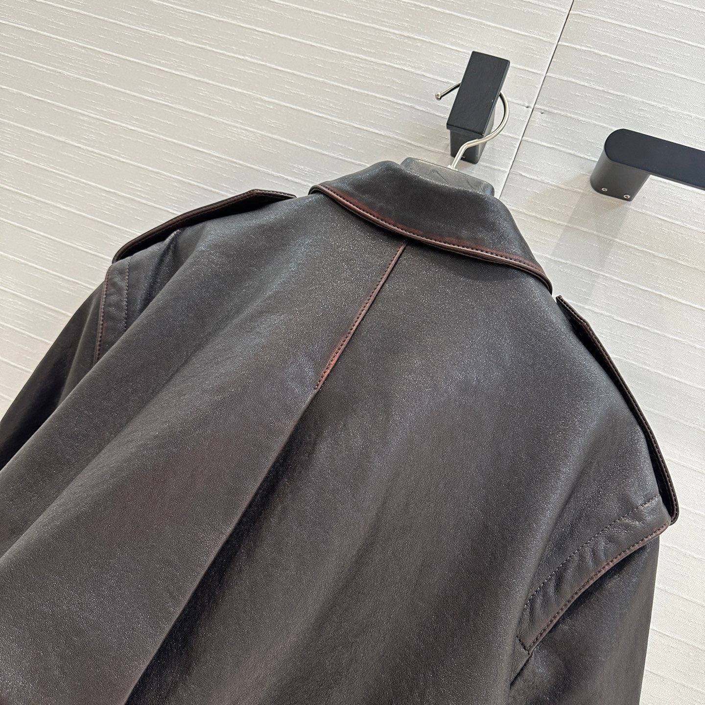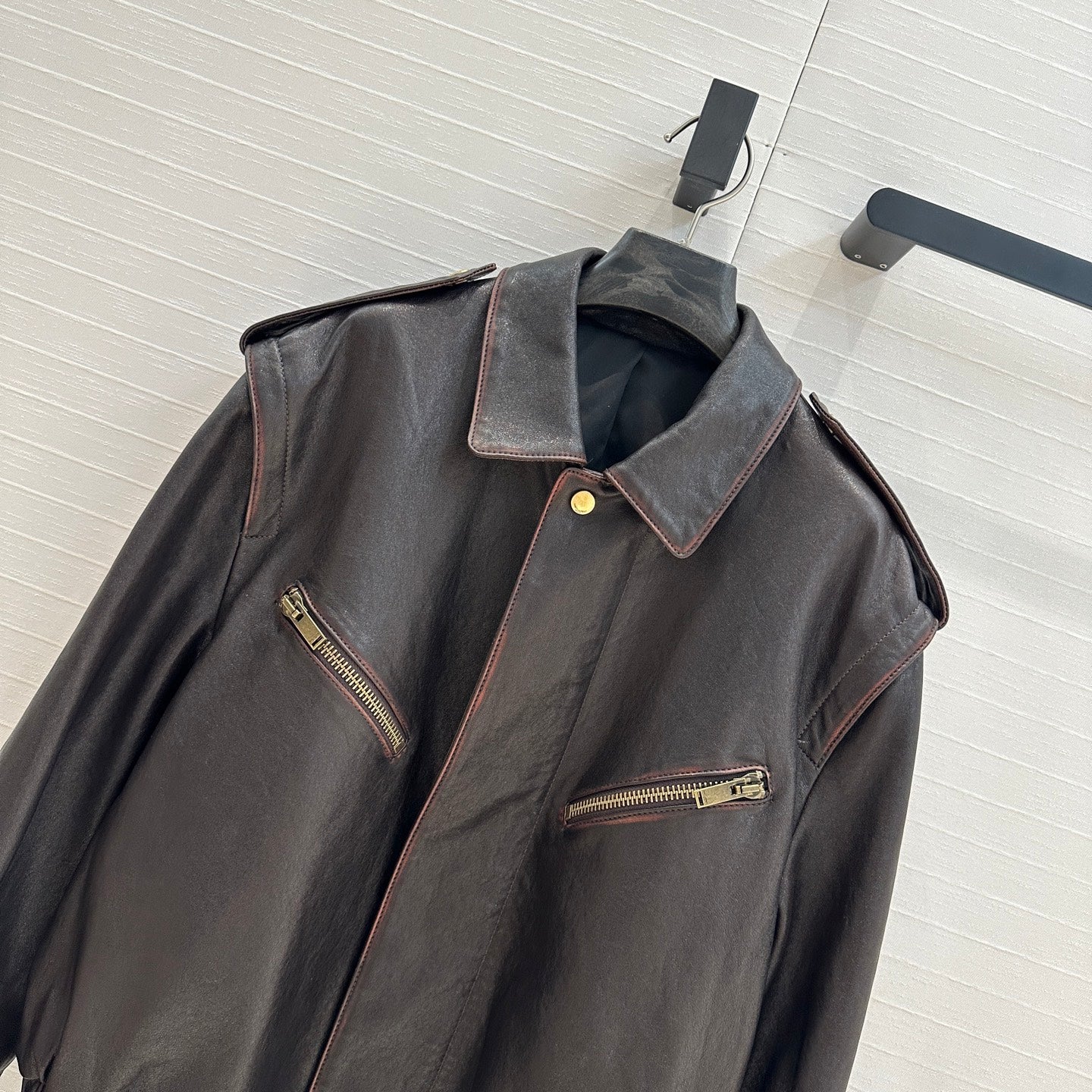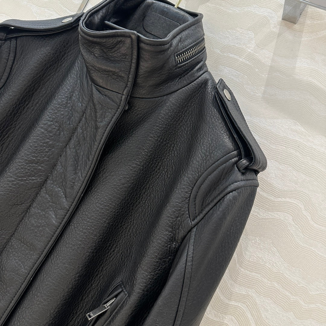 YSL Right-angle Shoulder Silhouette Jacket Black Brown Lambskin