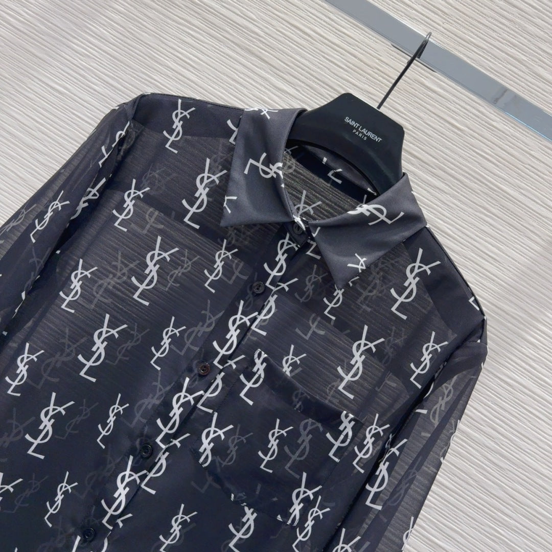 YSL 2025 Shirt Dress Black Flax Cotton