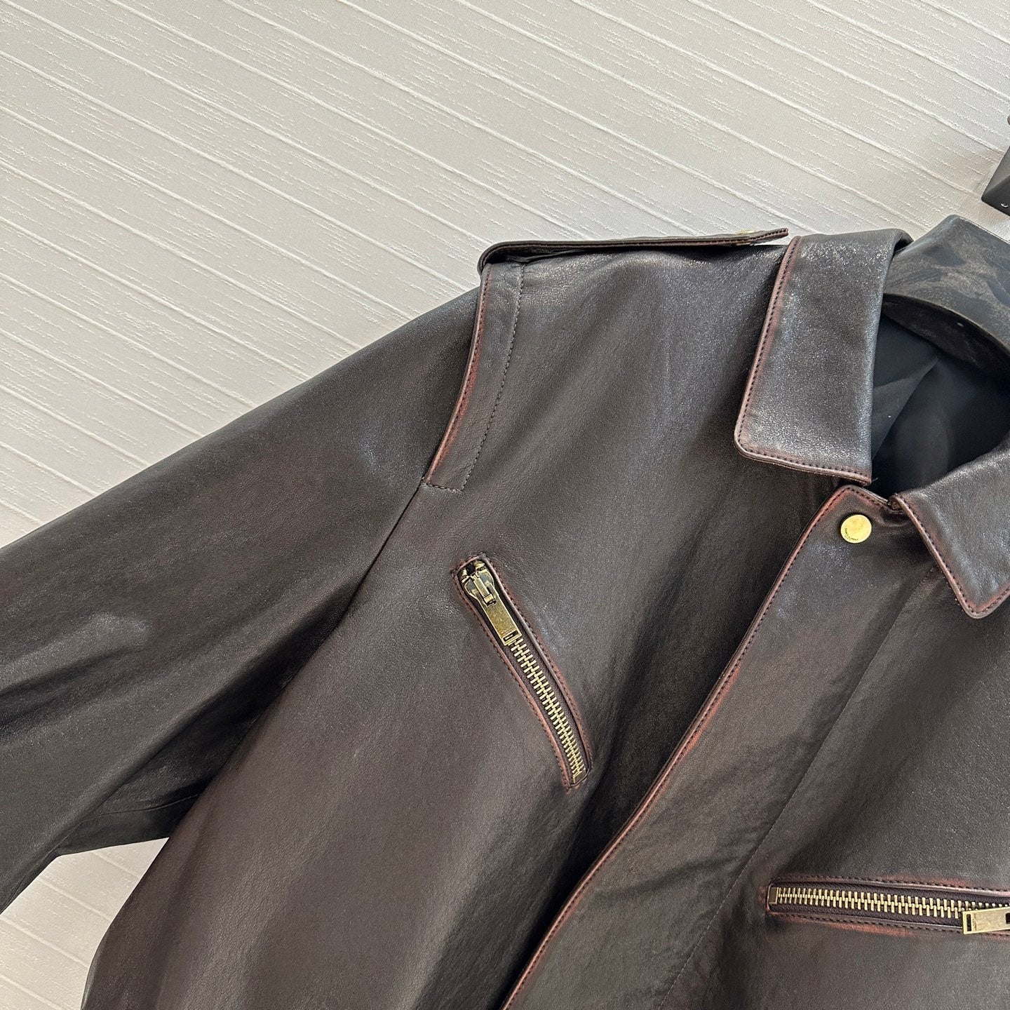 YSL 25 Cracked Pleated Jacket Brown Acetate