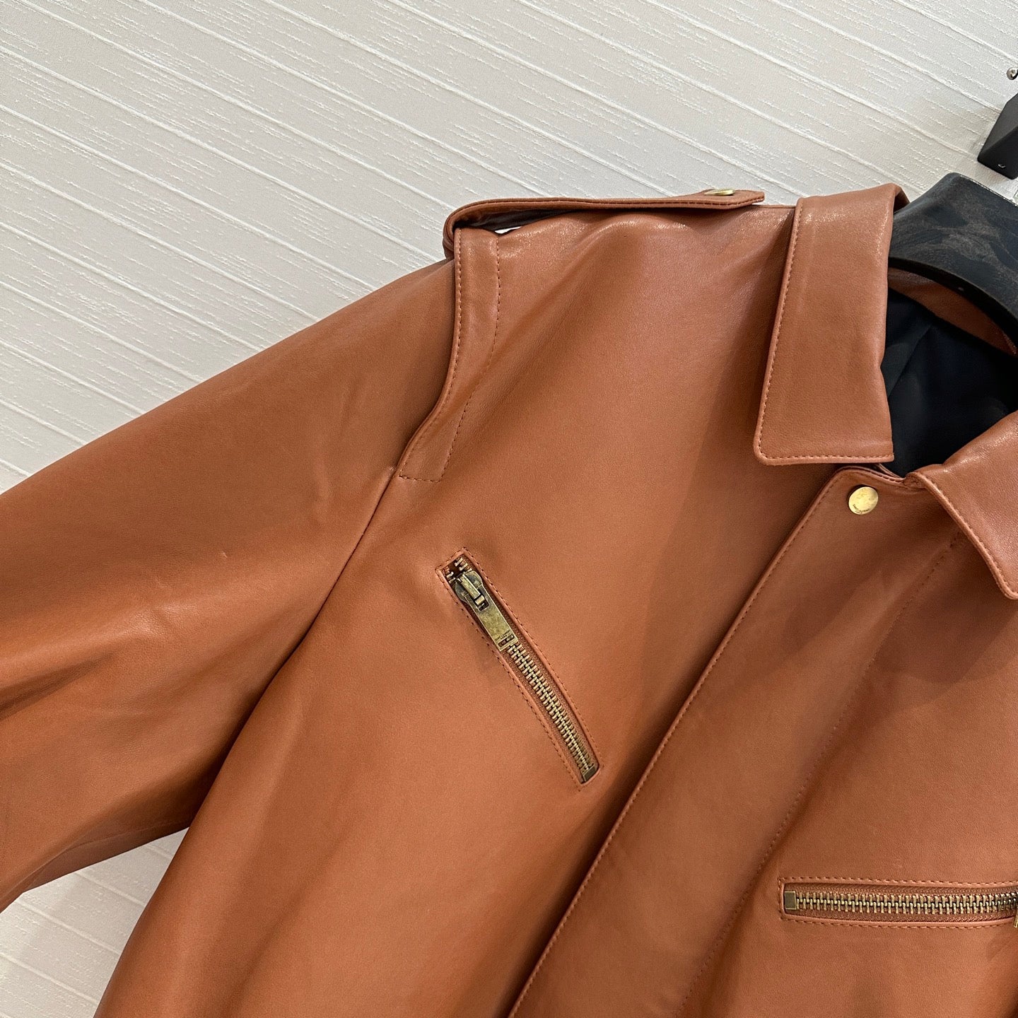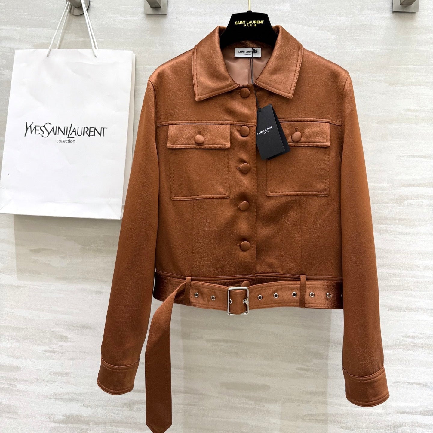 YSL Double Pocket Silhouette Jacket Brown Lambskin