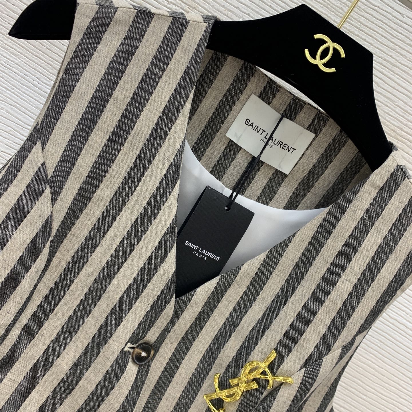 YSL Striped Vest Black mix White Cotton Polyester