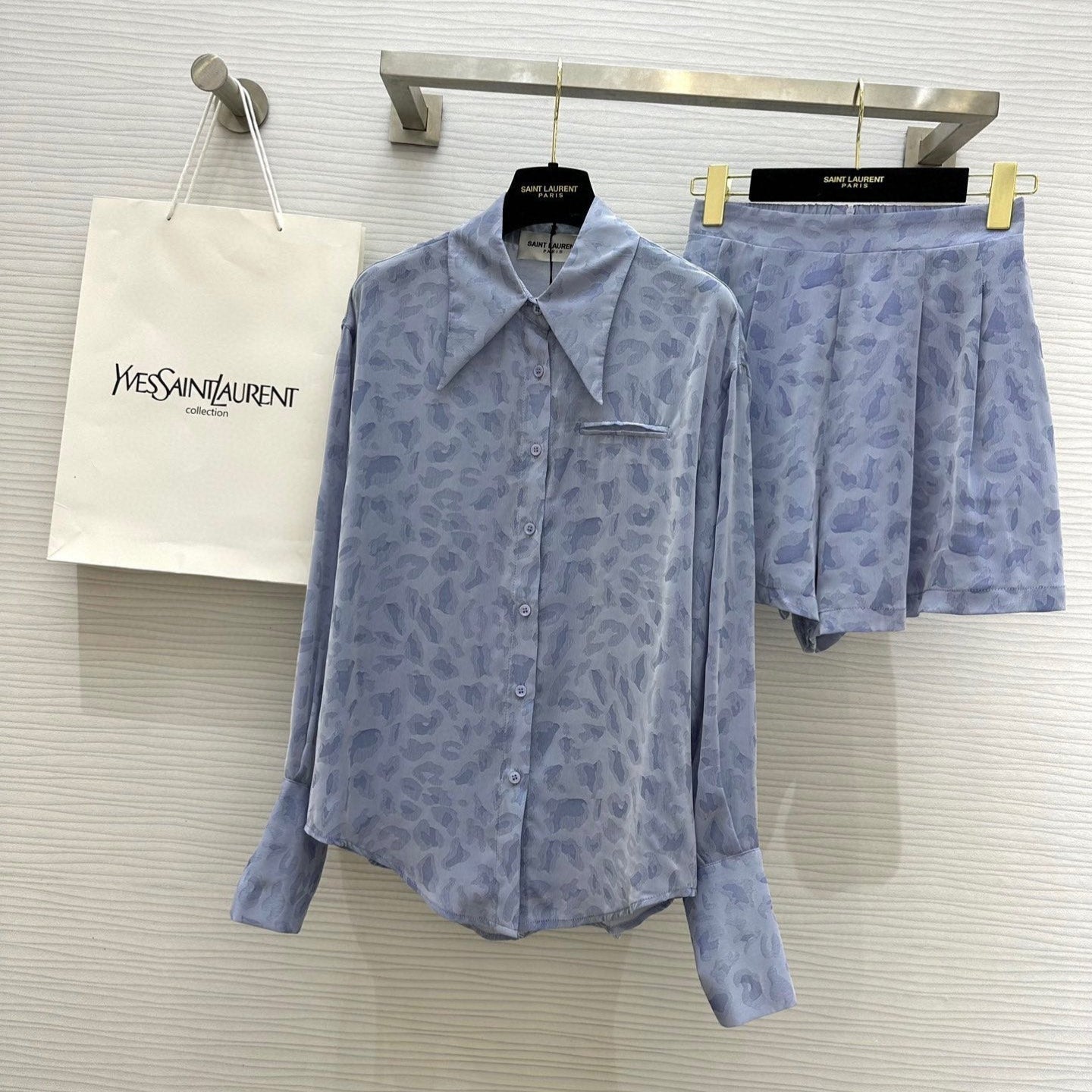 YSL 25 Leopard Print Set Pastel Blue Tencel Cotton