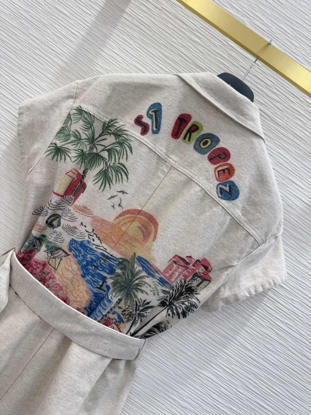 CD 2025 Shirt Dress Beige with Colorful Cotton