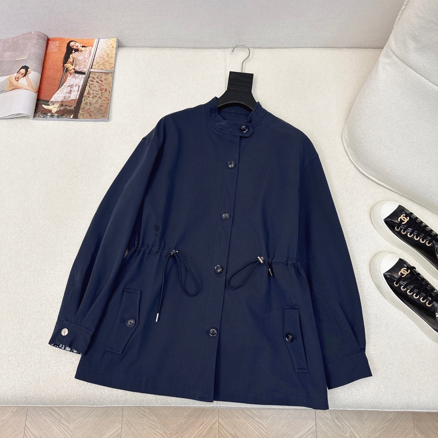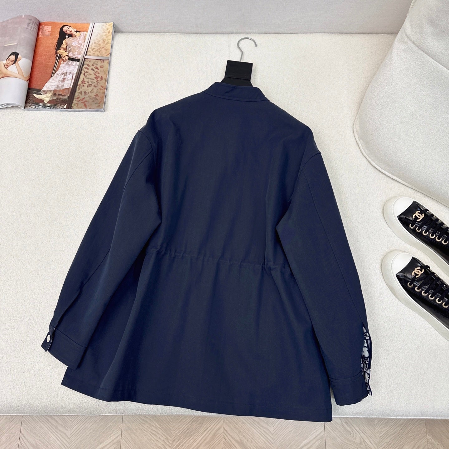 CD 25 Mid-length Trench Coat Blue and Beige Cotton Polyester 593395