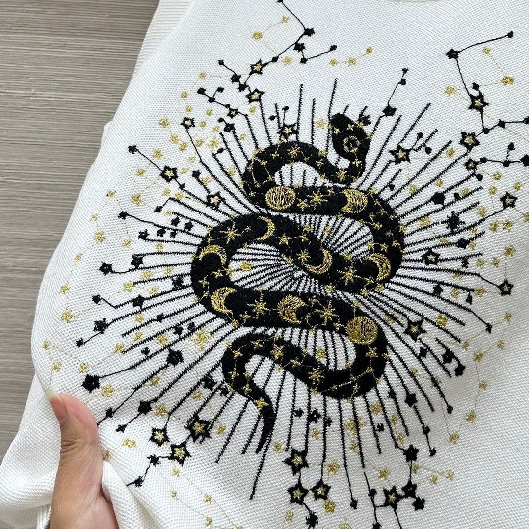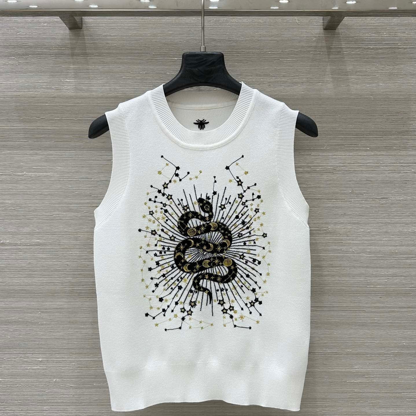 CD 25 Snake Embroidery Knitted Vest Top White Tencel Wool