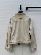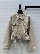CD 25 Waist Tie Short Jacket Beige Cotton Cashmere