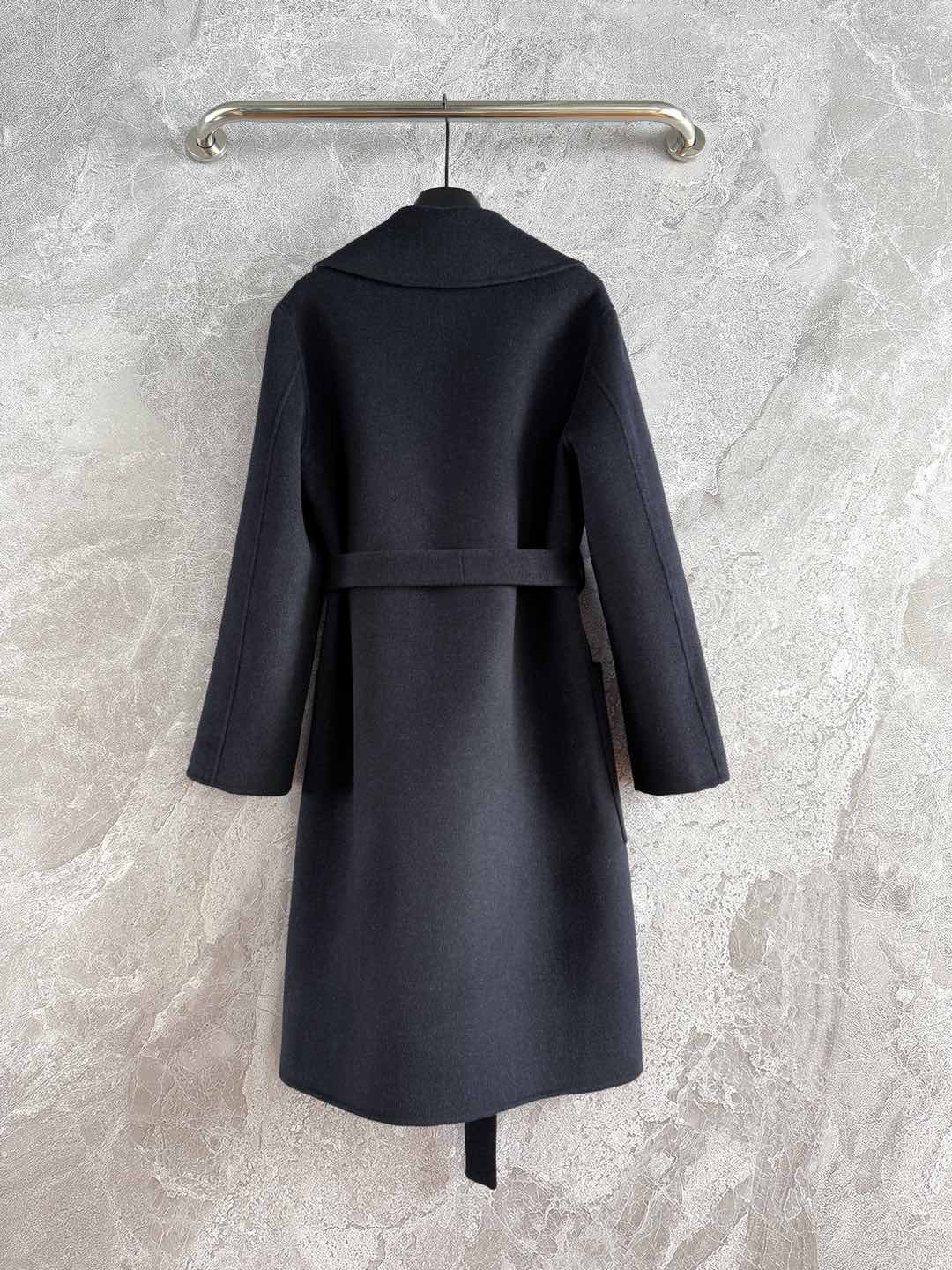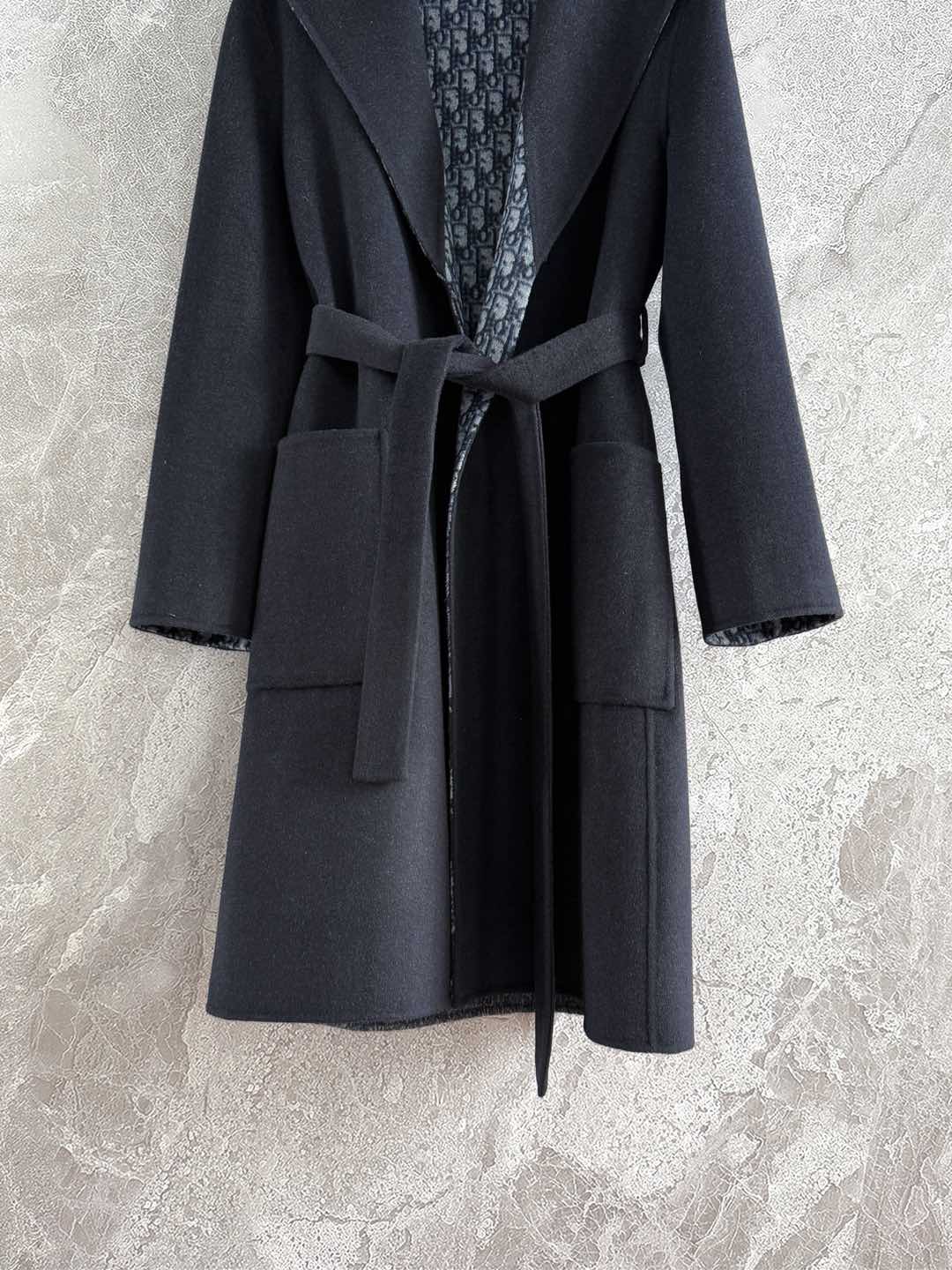 CD Hooded Long Coat Black Wool Silk