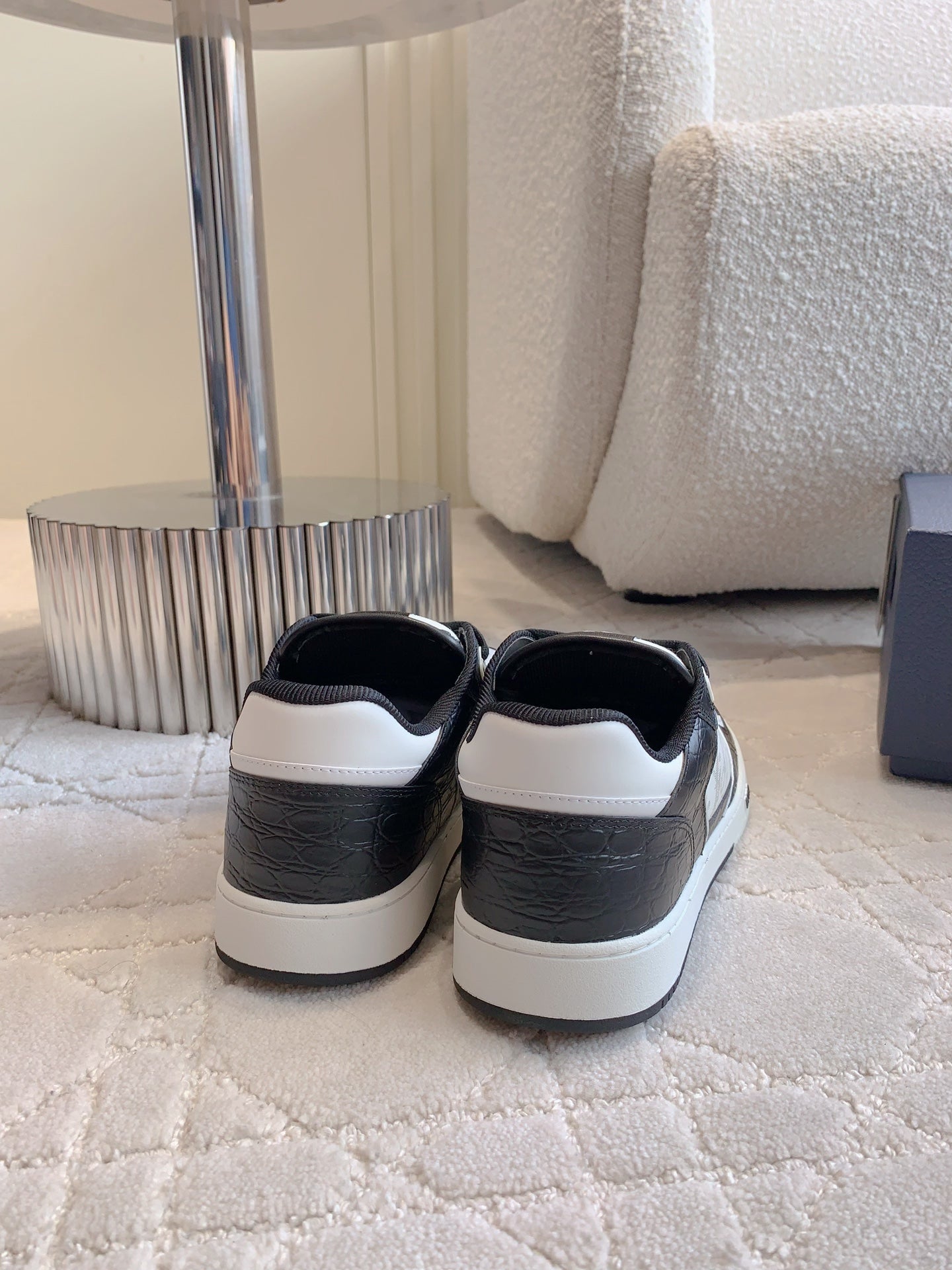 CD B27 Low-Top Sneaker White Black Print Wrinkled Calfskin