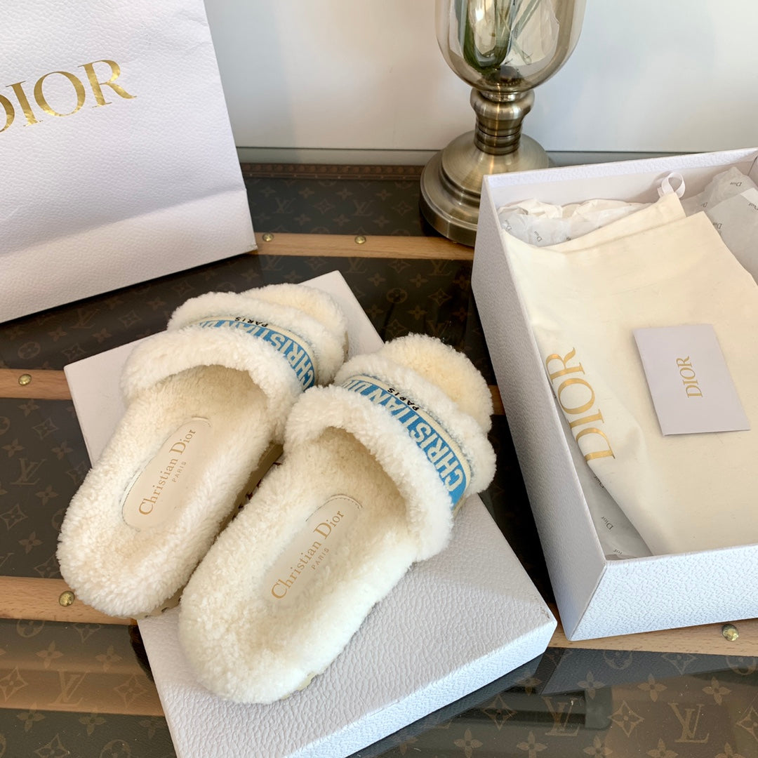 CD Dway Slide Blue White Wool Fleece Lining And Canvas Fabric