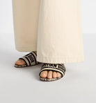 CD Dway Slide Natural Raffia and Black D-Butterfly Paisley Motif