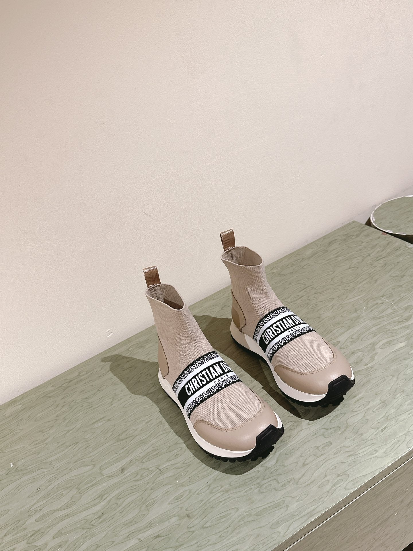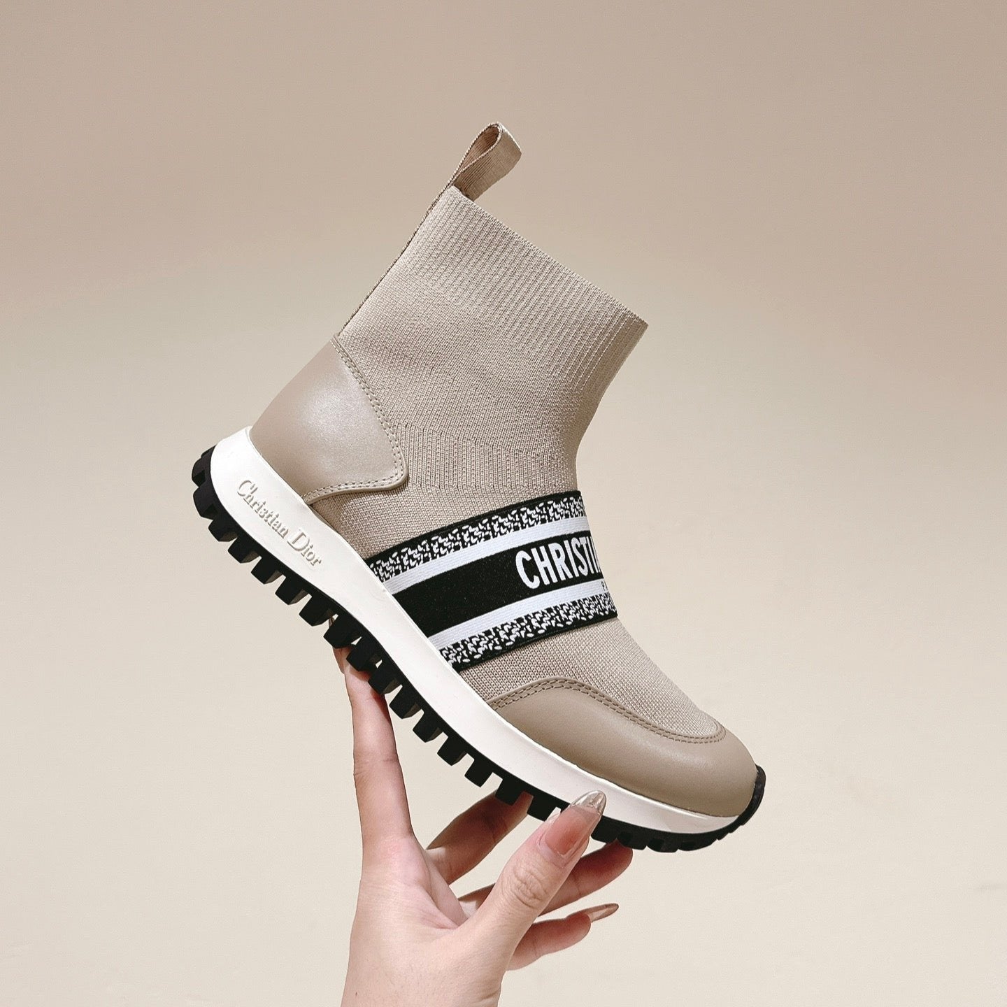 CD High-Top Sneaker 40mm Beige Stretch Wool And Lambskin