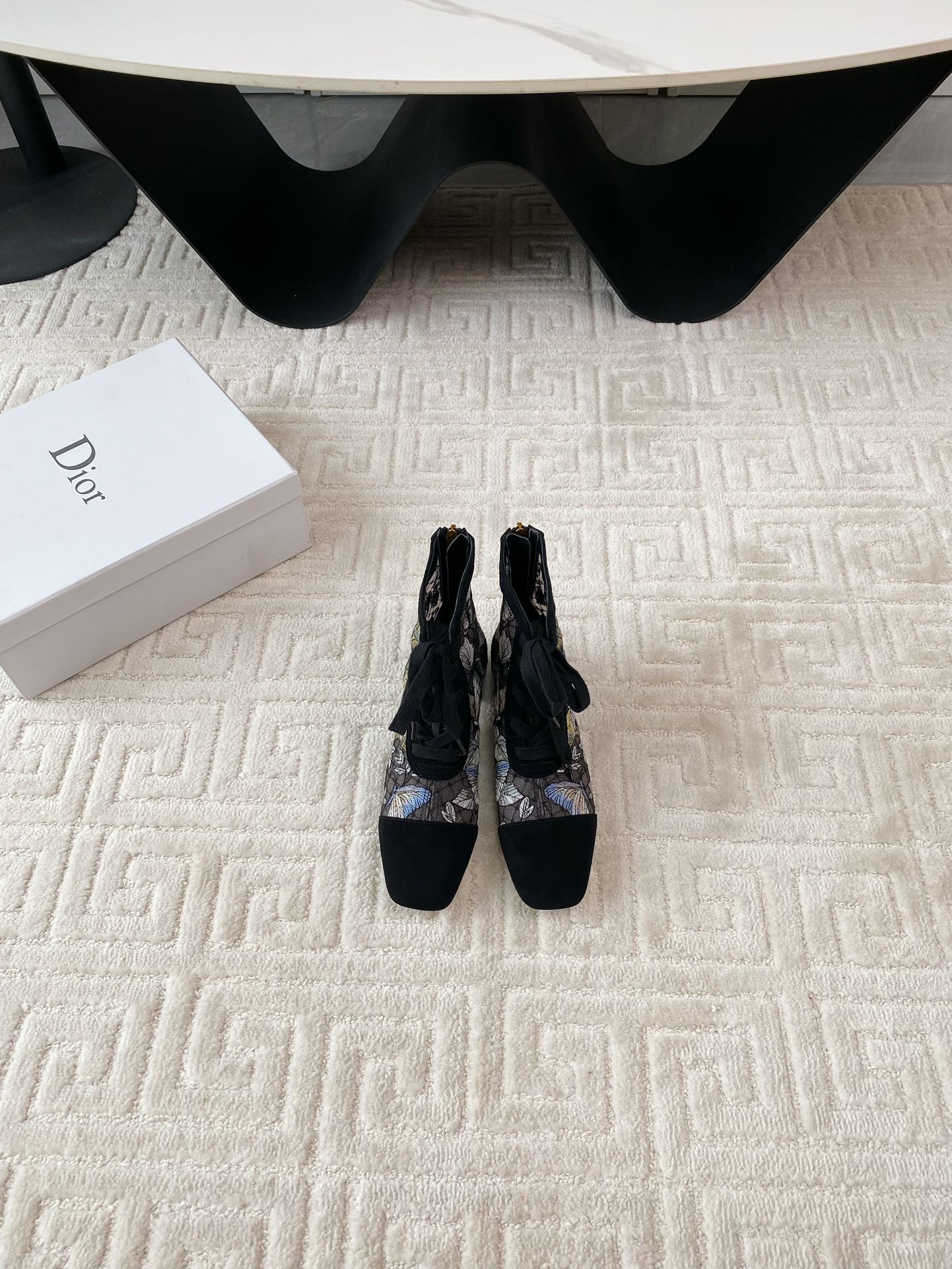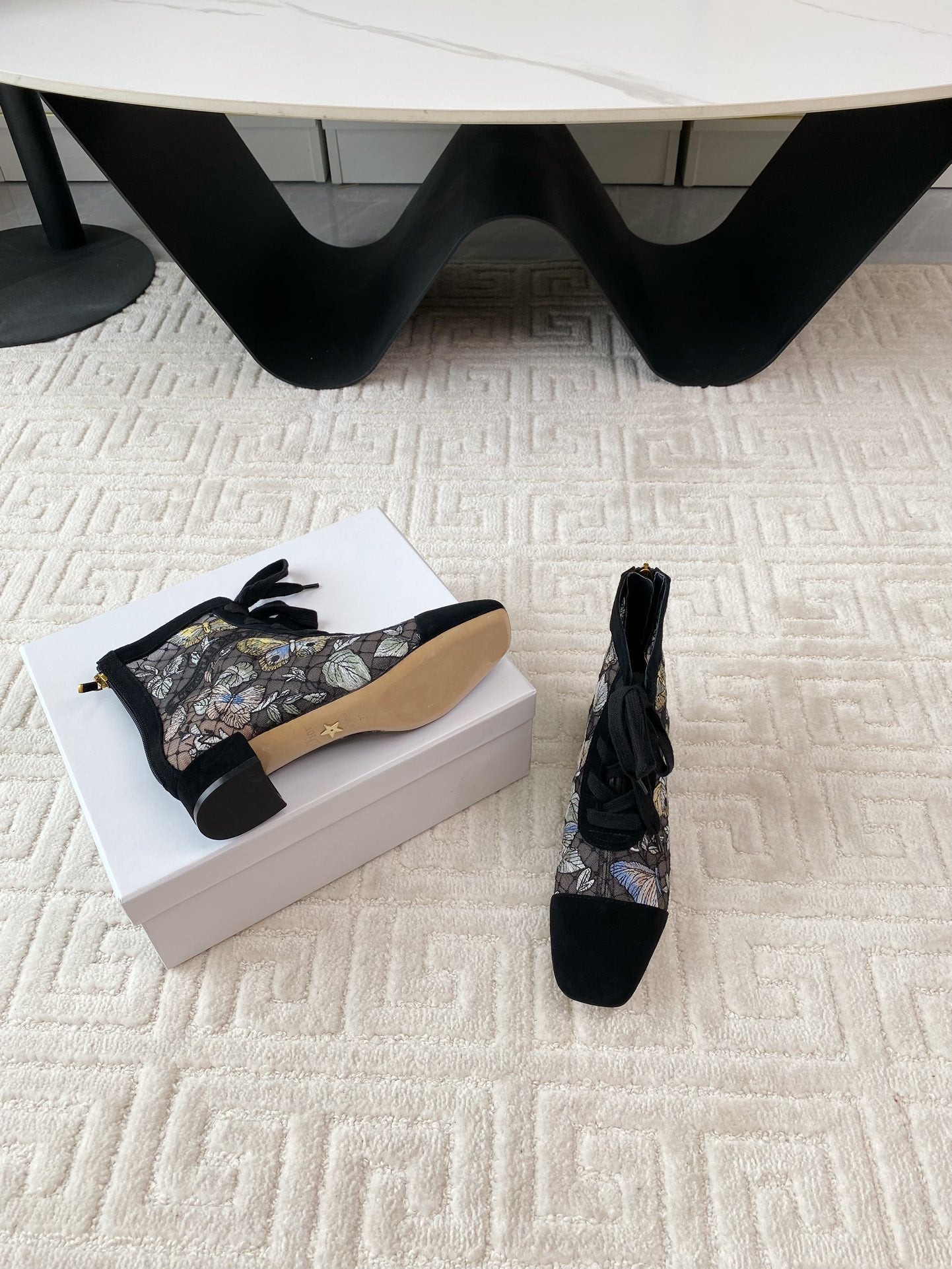 CD Naughtily-D Heeled Ankle Boot Black Mix Yellow Blue Transparent Mesh Butterfly And Suede