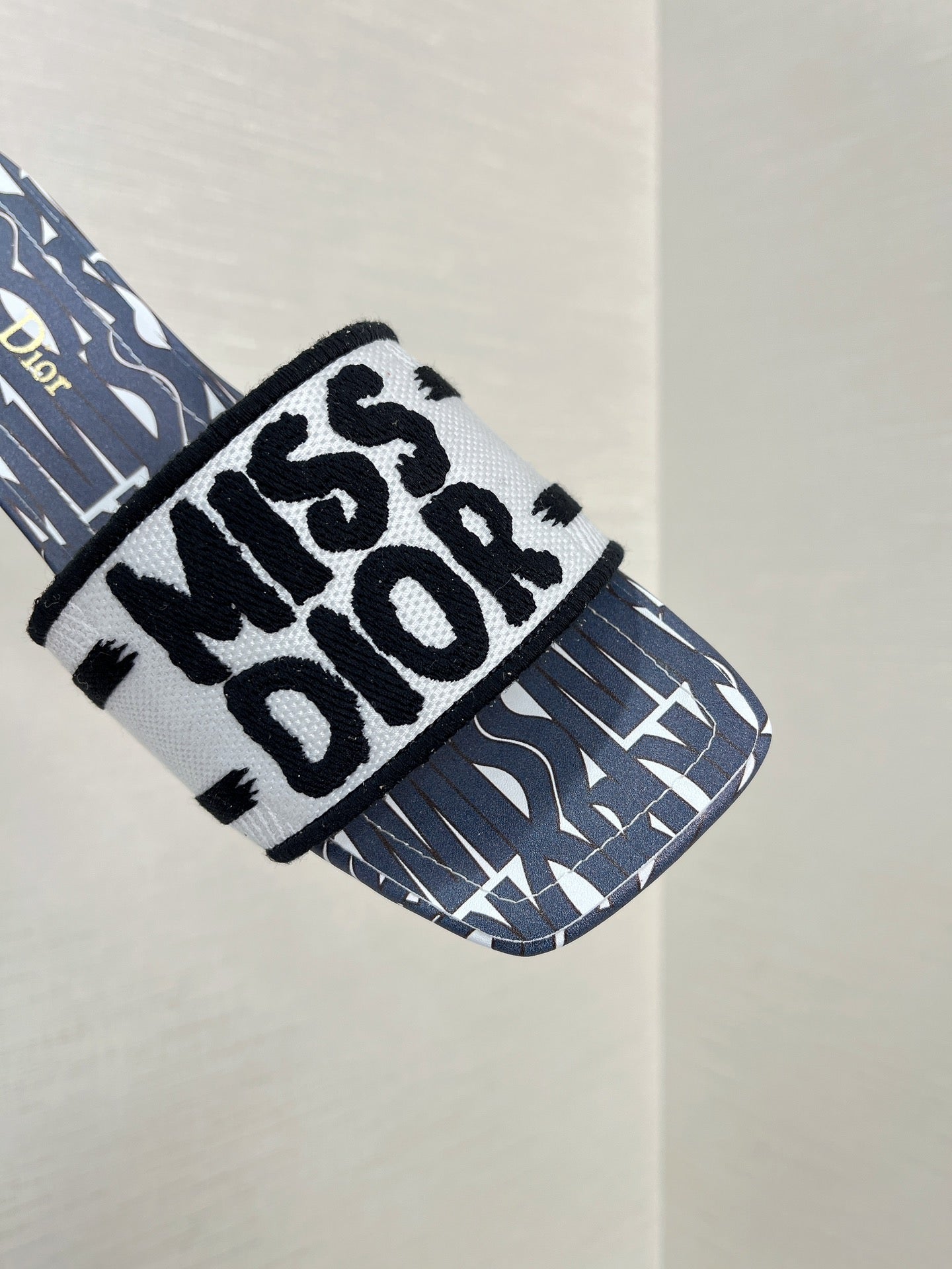 dway heeled slide 35 embroidered cotton grey miss cd alllover motif