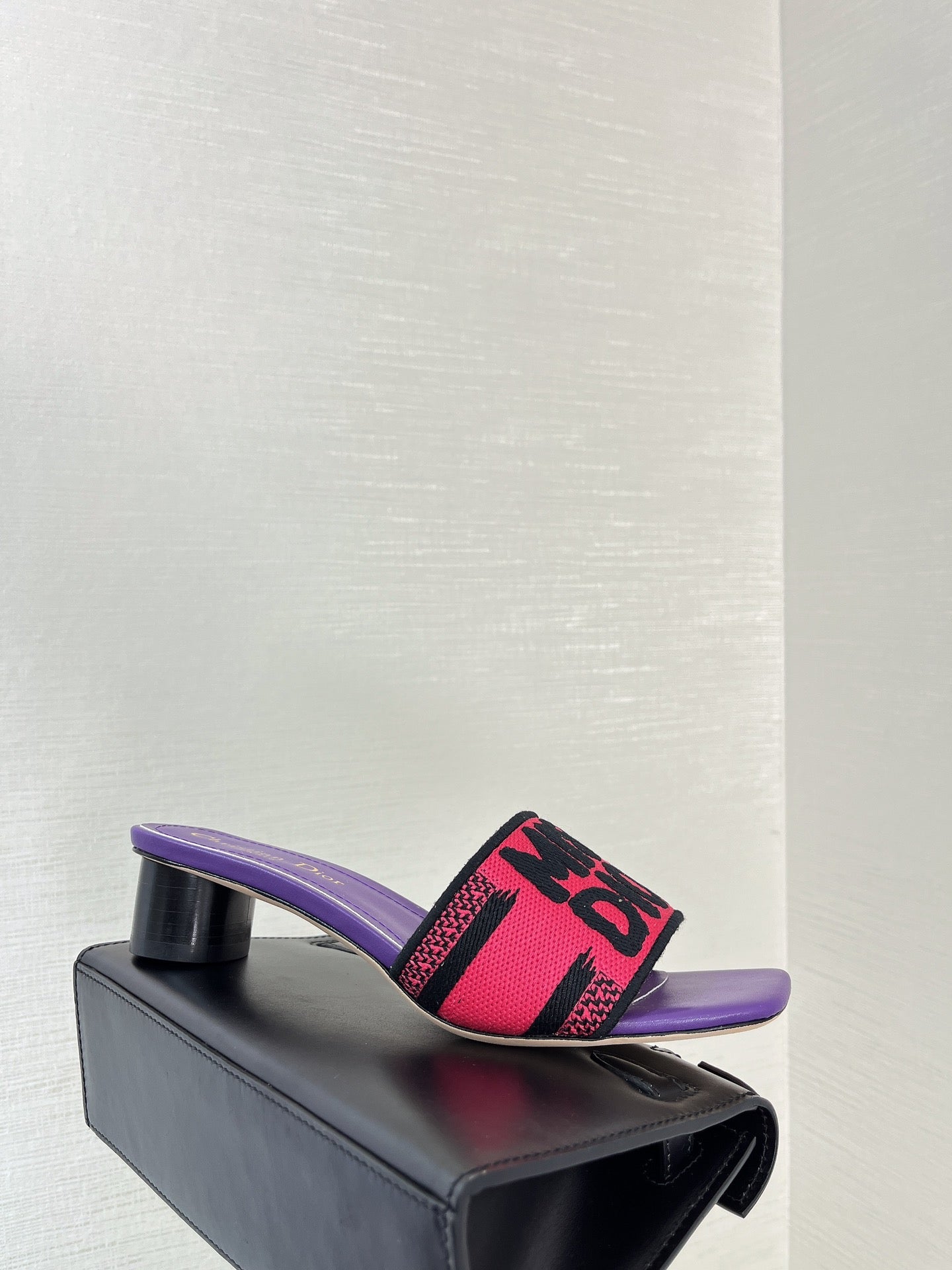 dway heeled slide 35 red purple embroidered cotton