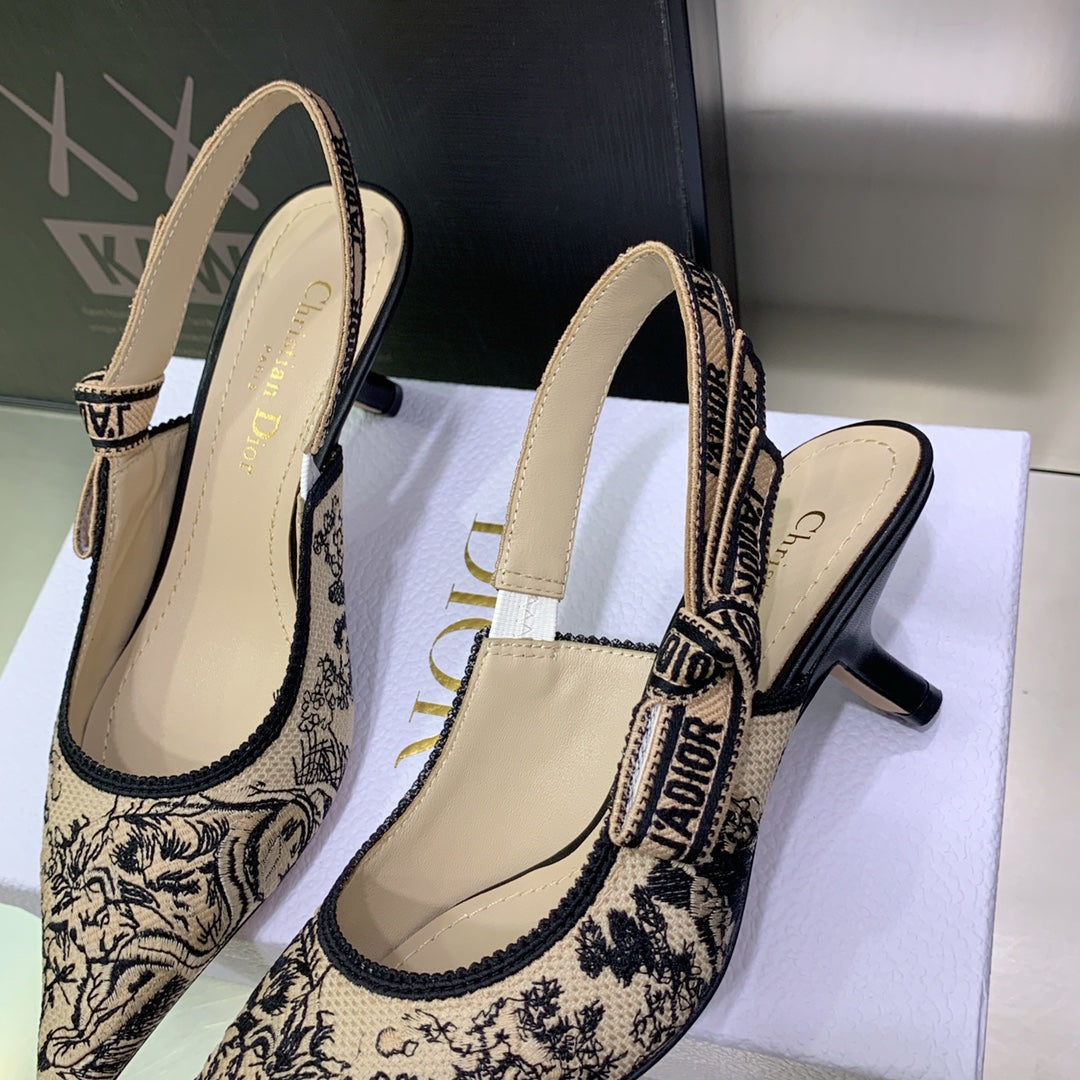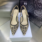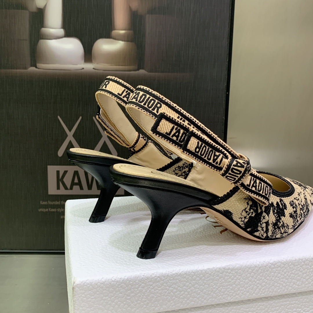 JAdior Slingback Pump 65 Black Embroidered Cotton with Gold-Tone Metallic Thread