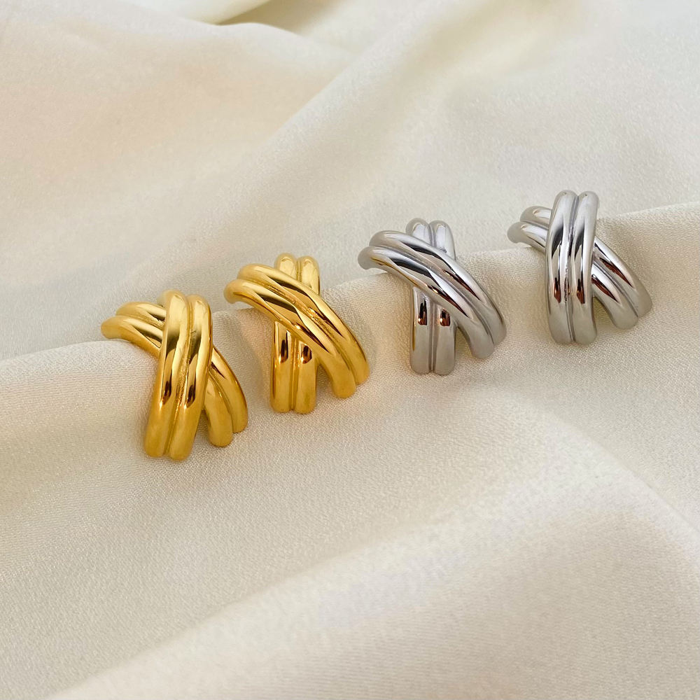 DOUBLE C SMALL SILVER DIAMOND EARRINGS