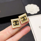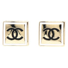 CC LIGHT GOLD AND WHITE ENAMEL SQUARE EARRINGS