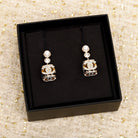 CHANE 23 FULL DIAMOND SIEVE DOUBLE C GOLD EARRINGS