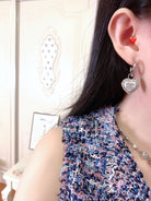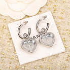 DOUBLE C DROP HEART SILVER DIAMONDS EARRINGS
