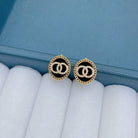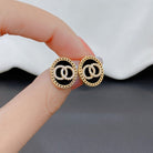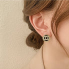 DOUBLE CIRCLE DIAMOND ONYX STUD EARRINGS