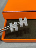 H STUD EARRINGS WITH SILVER DIAMONDS