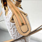 BY THE WAY MINI 18 IN WHITE WOOL AND CAMEL BROWN RAFFIA CALFSKIN TRIM
