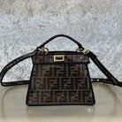 FENDI PEEKABOO ISEEU 20 BAG IN CHOCOLATE BROWN MIX BLACK NAPPA LEATHER GOLD HARDWARE