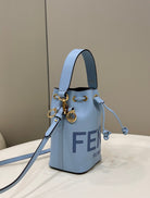MON TRESOR MINI 18 BAG IN LIGHT BLUE CALFSKIN FF WITH GOLD HARDWARE