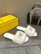 FENDI BAGUETTE MINK SLIDE SLIPPER IN WHITE FUR