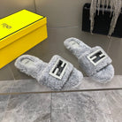 FENDI BAGUETTE SLIDE SLIPPERS IN GREY WOOL