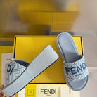 FENDI PLATFORM WEDGES IN PIGEON BLUE JACQUARD FABRIC WITH EMBROIDERED LOGO