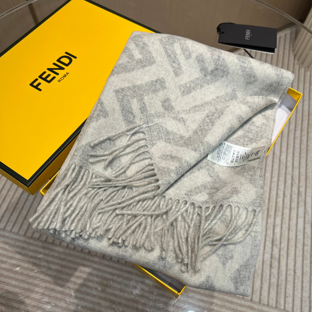 FF 170 CM SCARF IN DOVE GREY WOOL AND CASHMERE