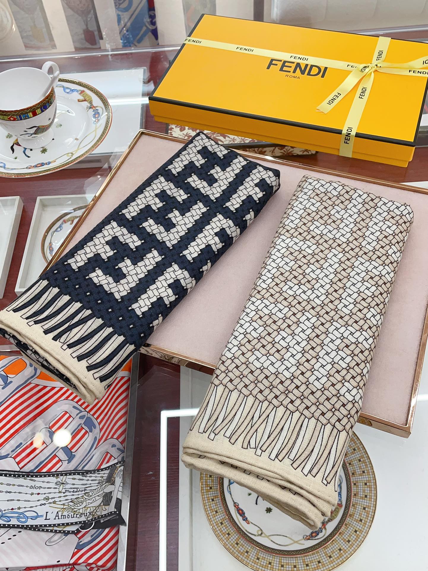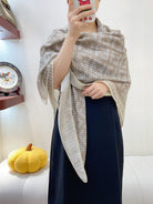 FF PONCHO 140 CM SCRAF IN BEIGE MONOGRAM SILK CASHMERE