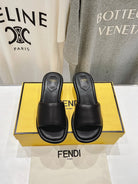 FENDI BAGUETTE MEDIUM-HEEL SANDALS 45 MM IN BLACK CALFSKIN