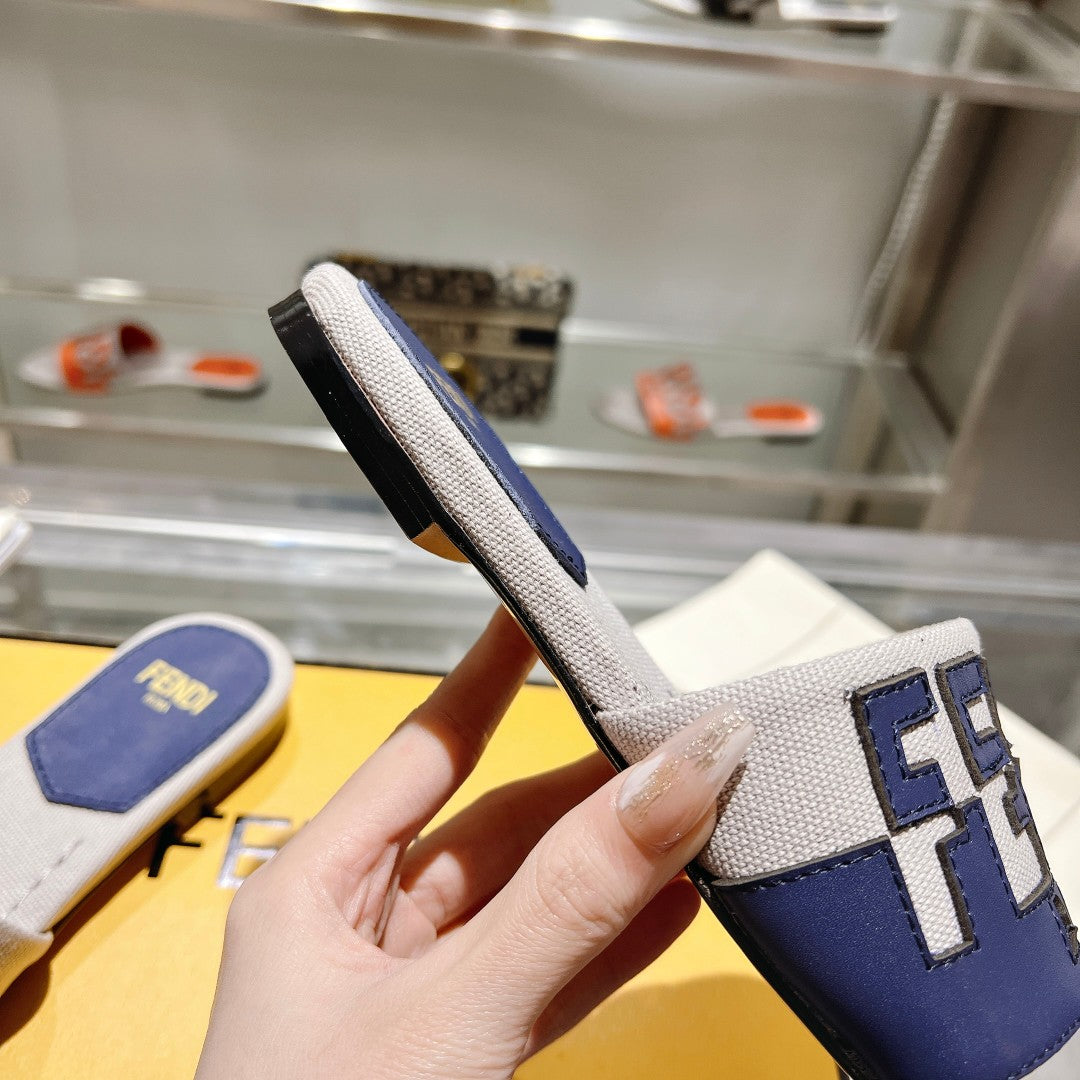FF Women Roma Signature Blue Grey Canvas Leather Slide