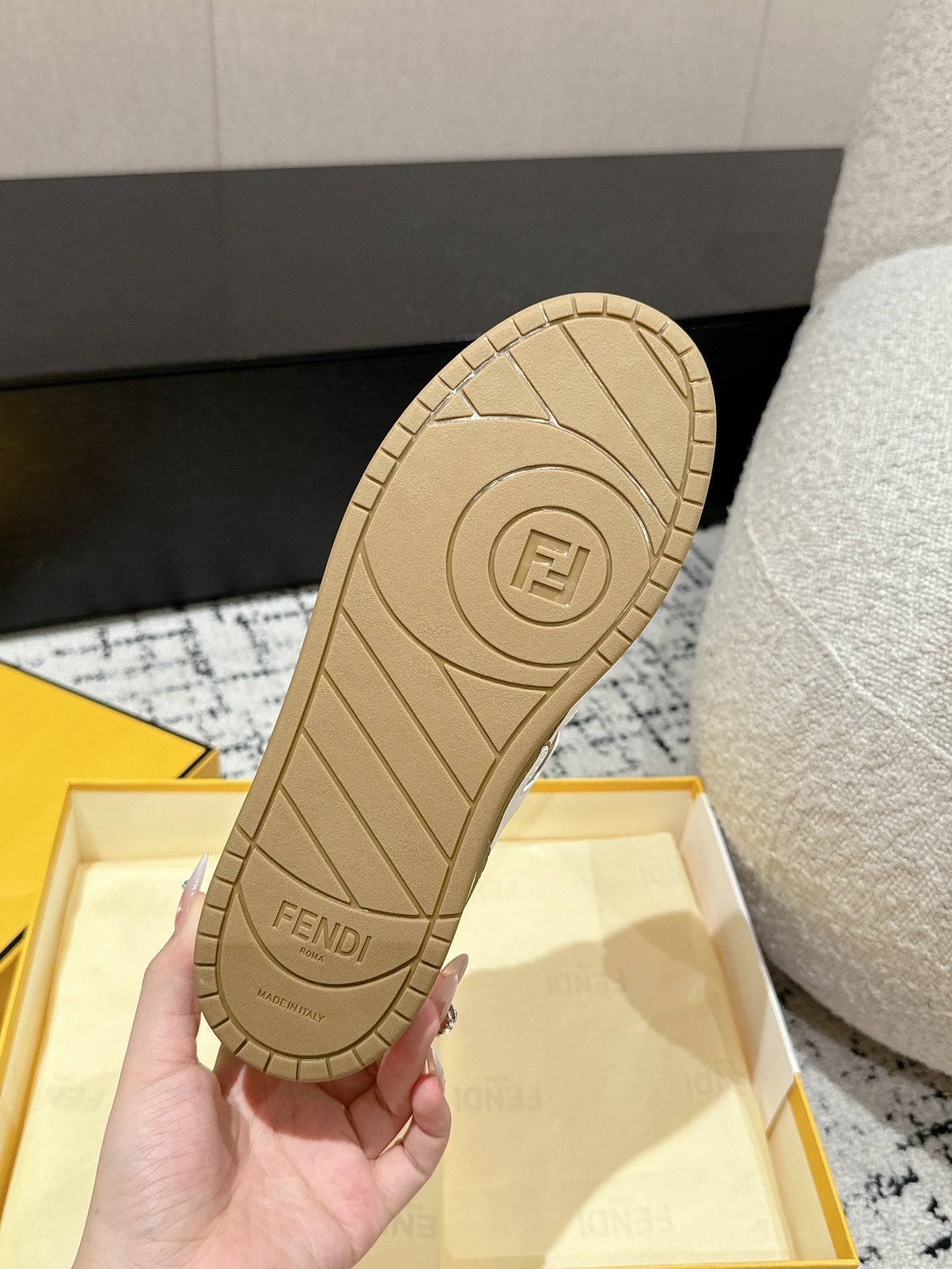 FENDI MATCH LOW-TOPS IN DARK TAN MIX WHITE CALFSKIN