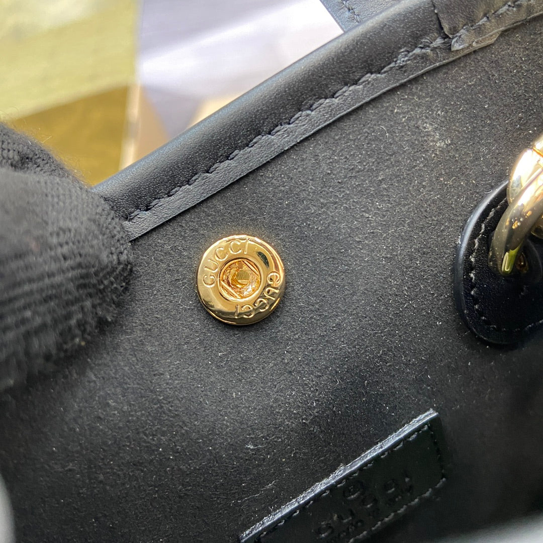 GG 20 SUPER MINI BAG WITH STRAP IN BLACK CALFSKIN