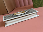 HORSEBIT 1955 WALLET IN BEIGE EBONY CANVAS MIX WHITE CALFSKIN GOLD CHAIN