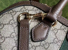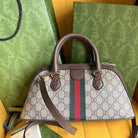 OPHIDIA 31 SMALL TOP HANDLE BAG IN BEIGE CANVAS AND BROWN CALFSKIN